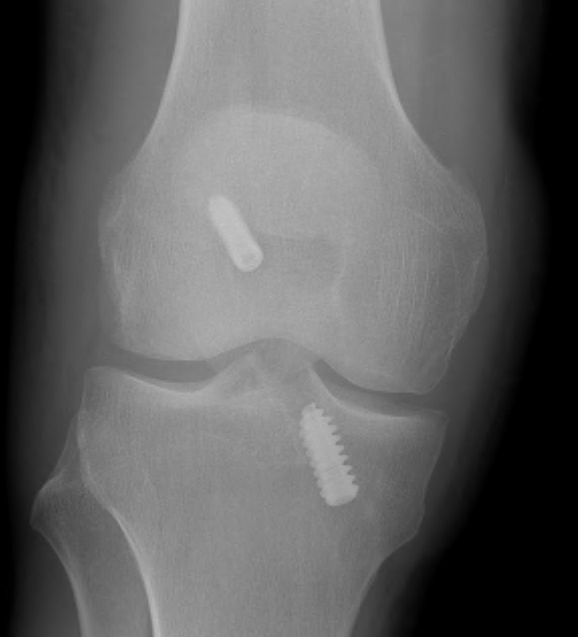 - increased knee effusion, femoral tunnel widening, and screw breakage with bioabsorbable