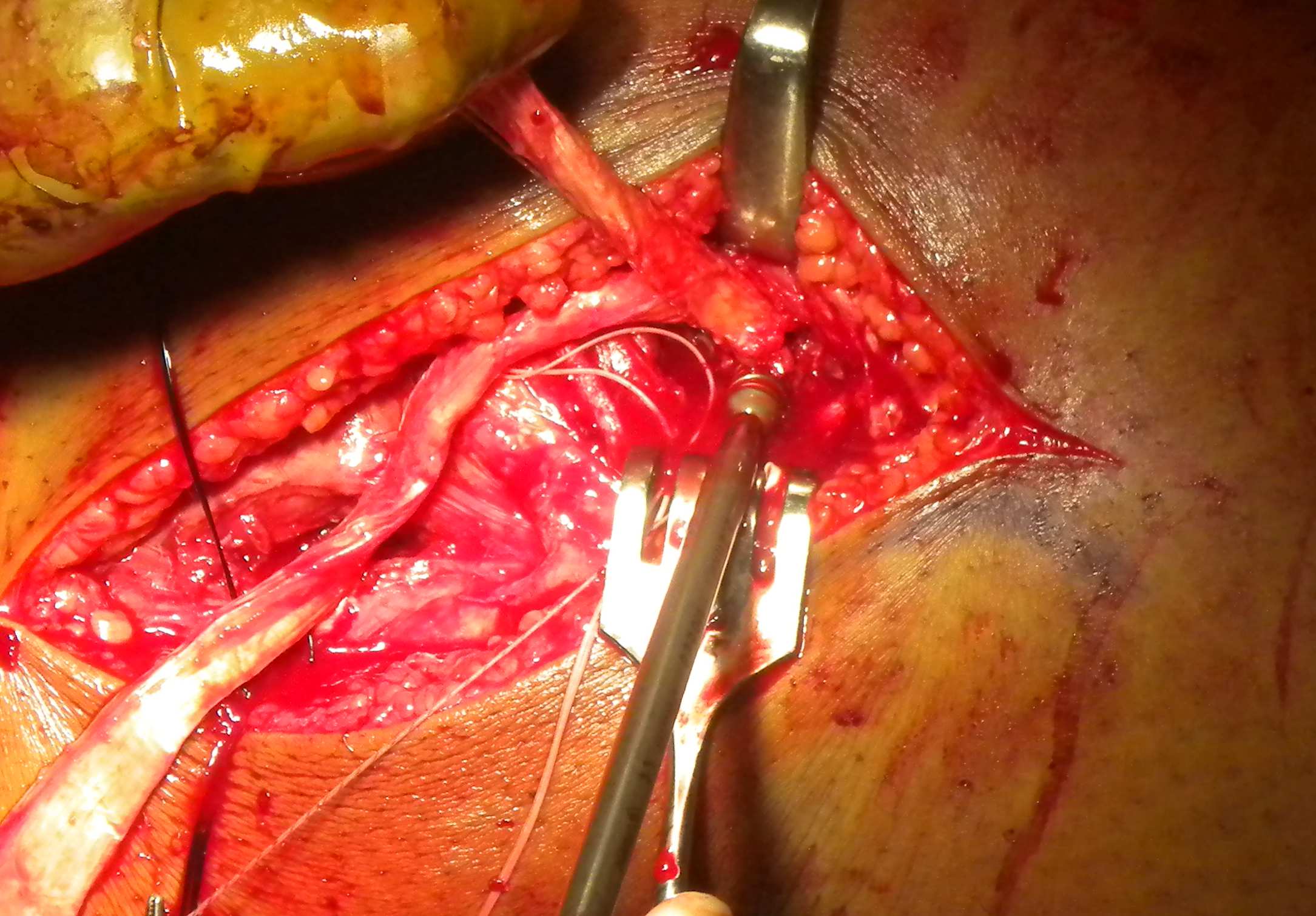 - tubularise distal end of tendon and leave long sutures