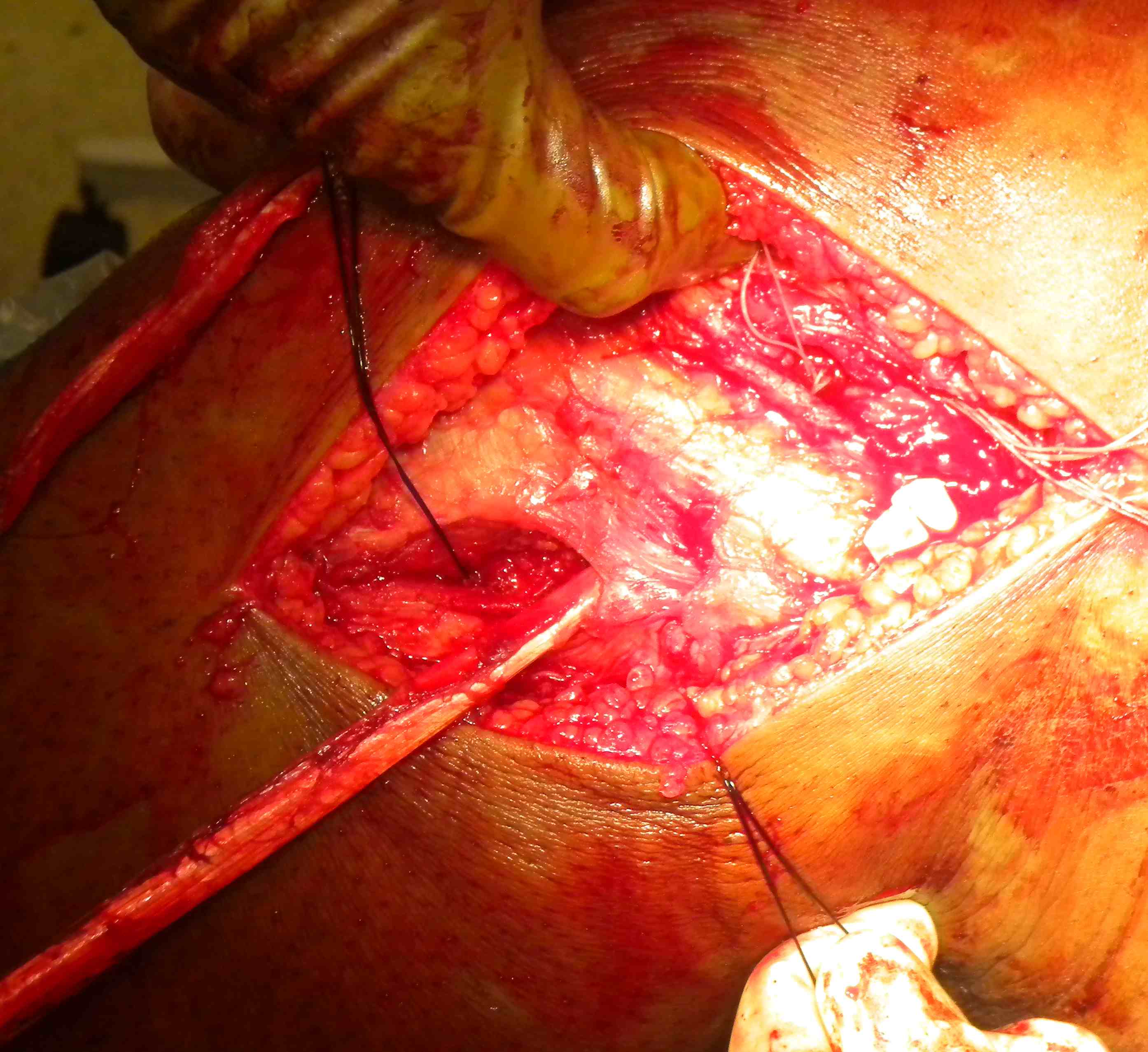 - insert retractor under lateral head of gastrocnemius to protect vascular structures