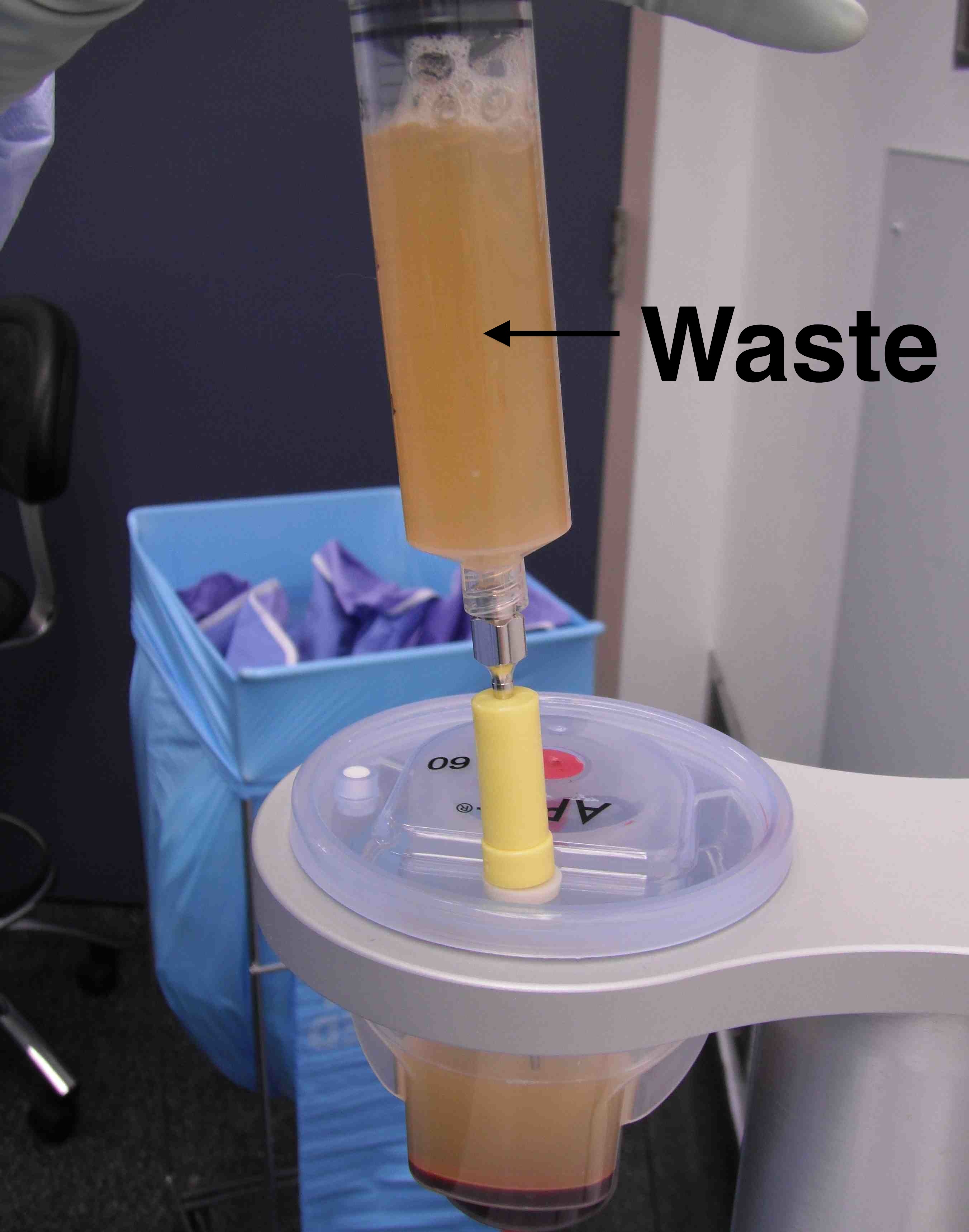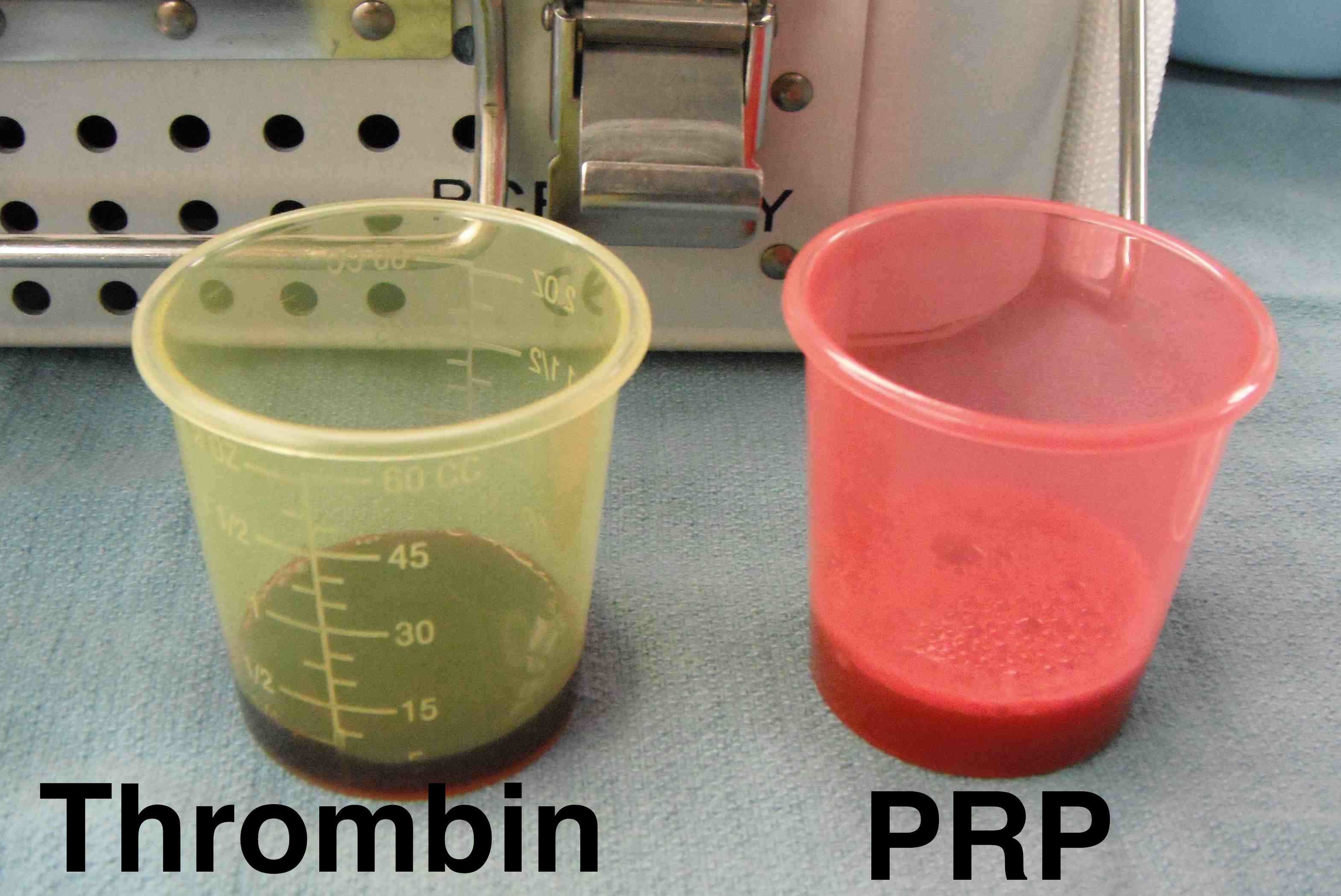 - 60 mls to be centrifuged to PRP, mix with anticoagulant