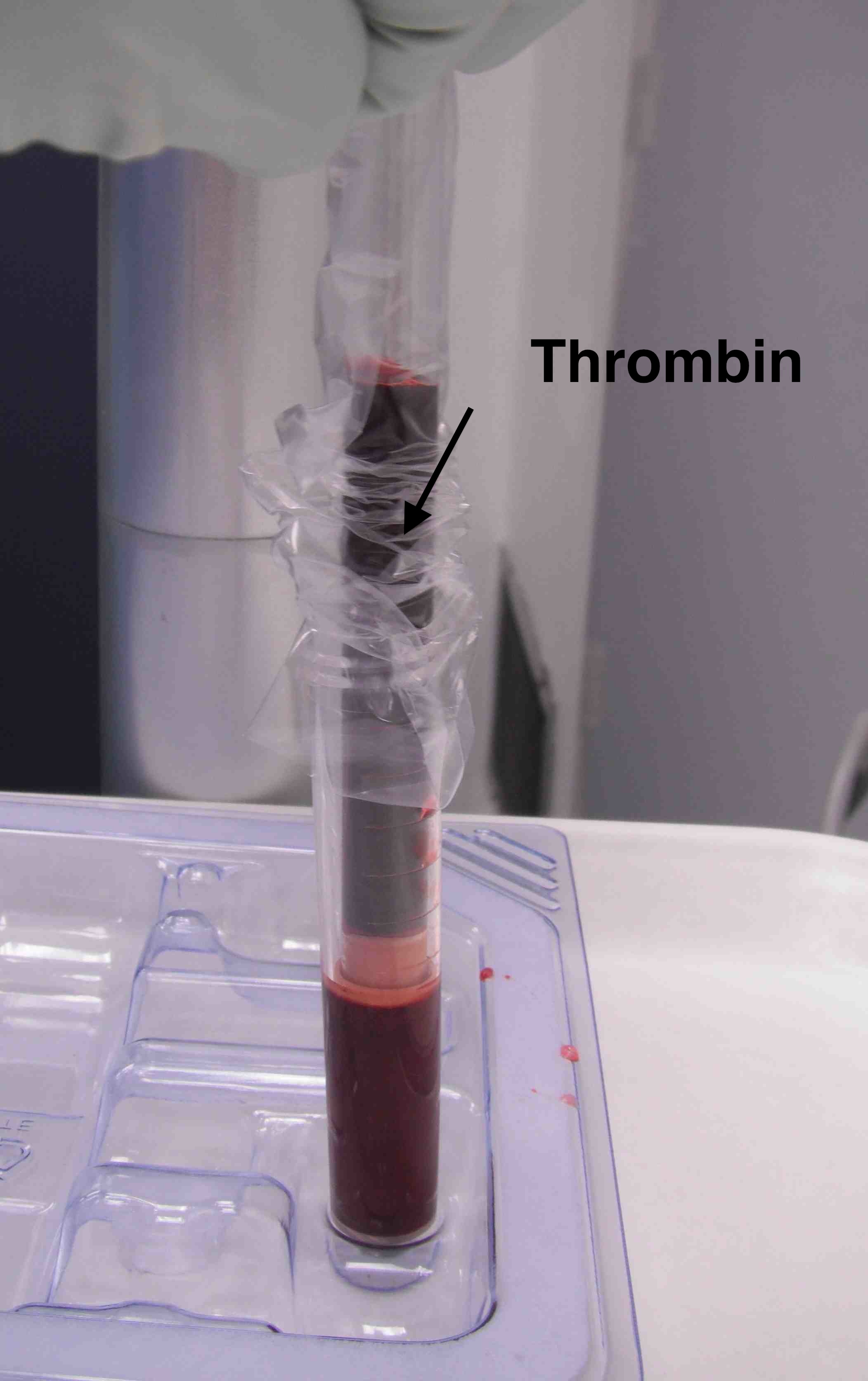 - 8 mls to provide thrombin, mix with anticoagulant