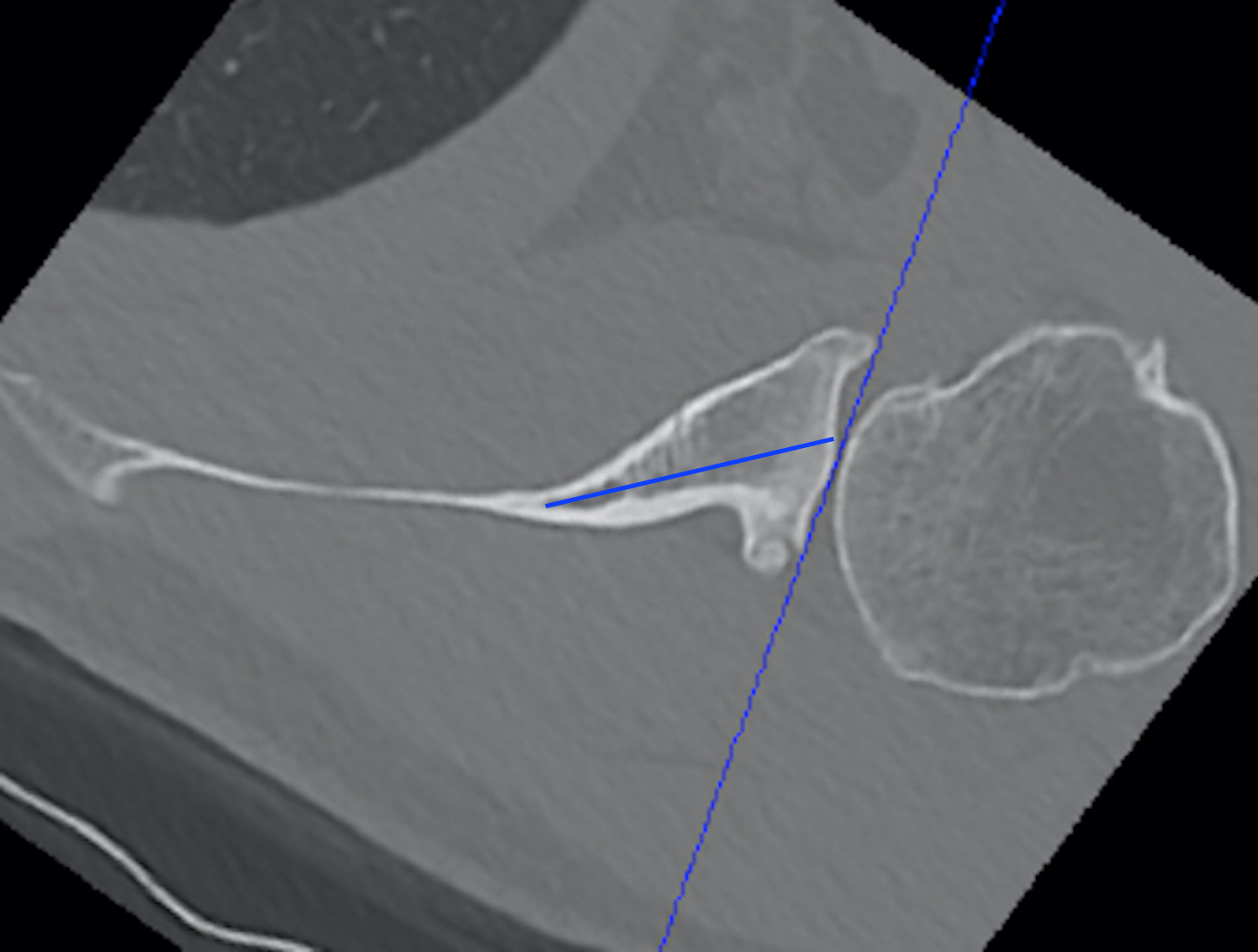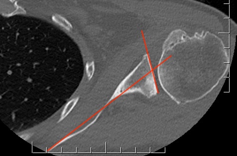 - glenoid version measurement accurate if > 50% of the scapula width included