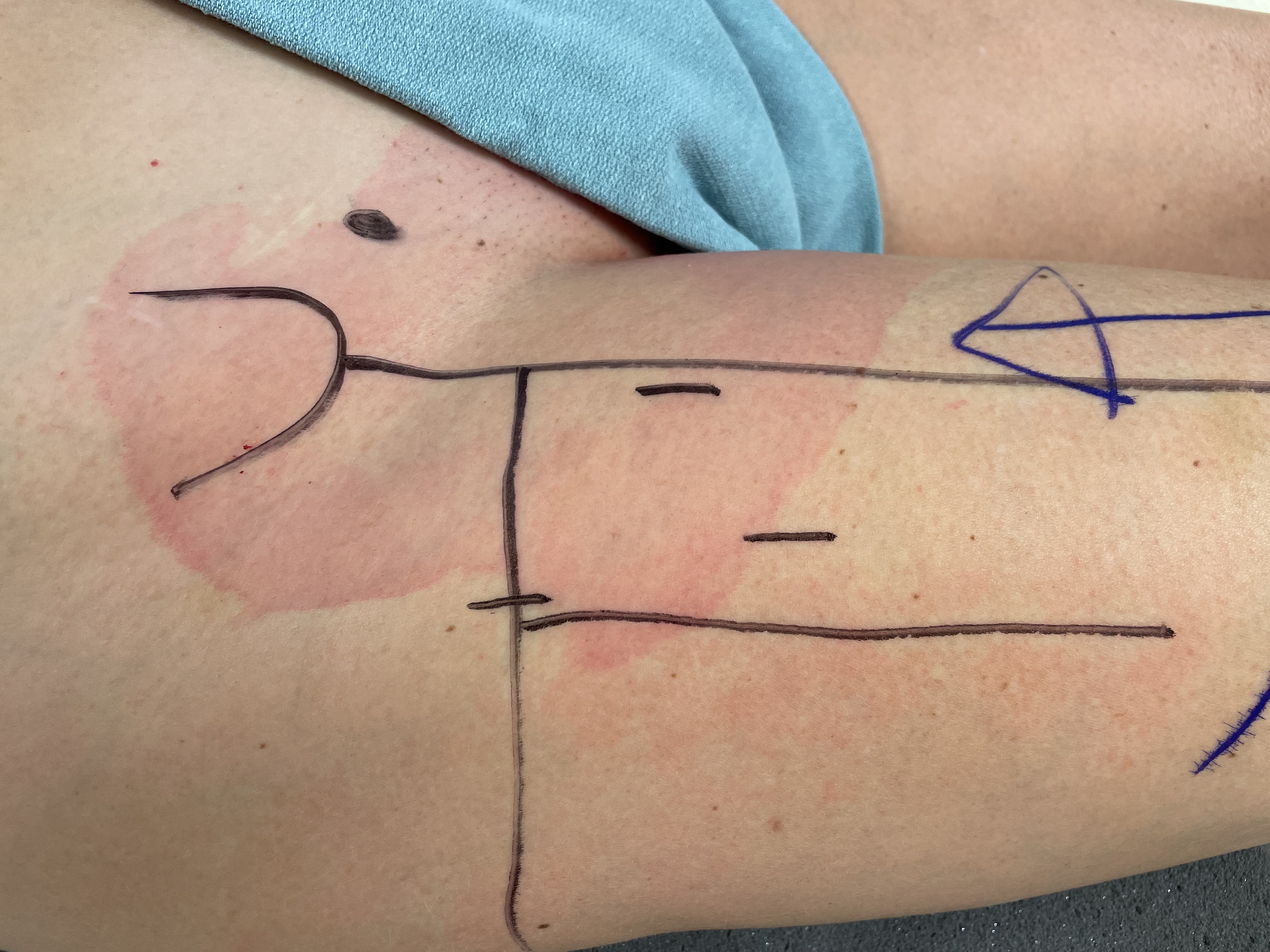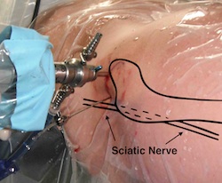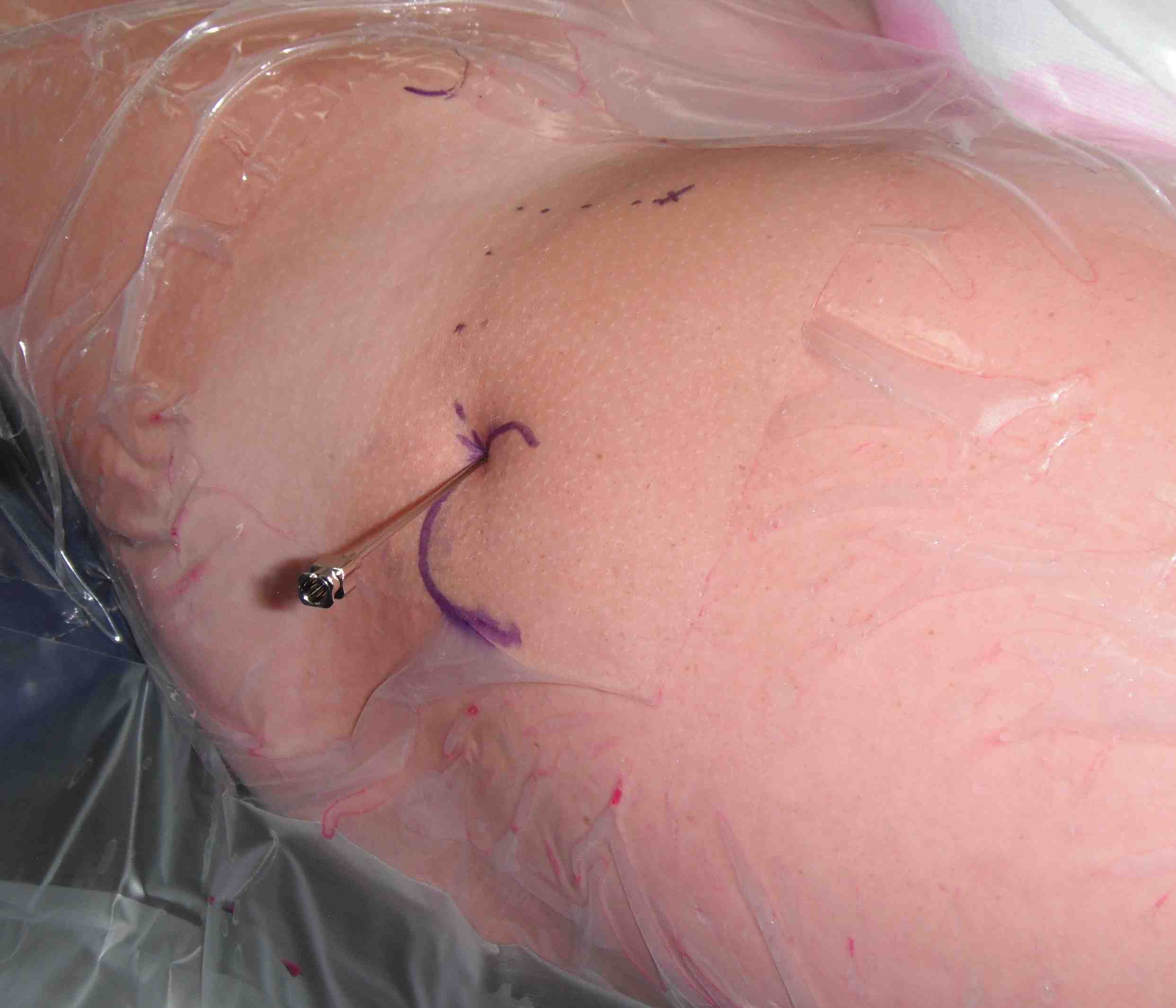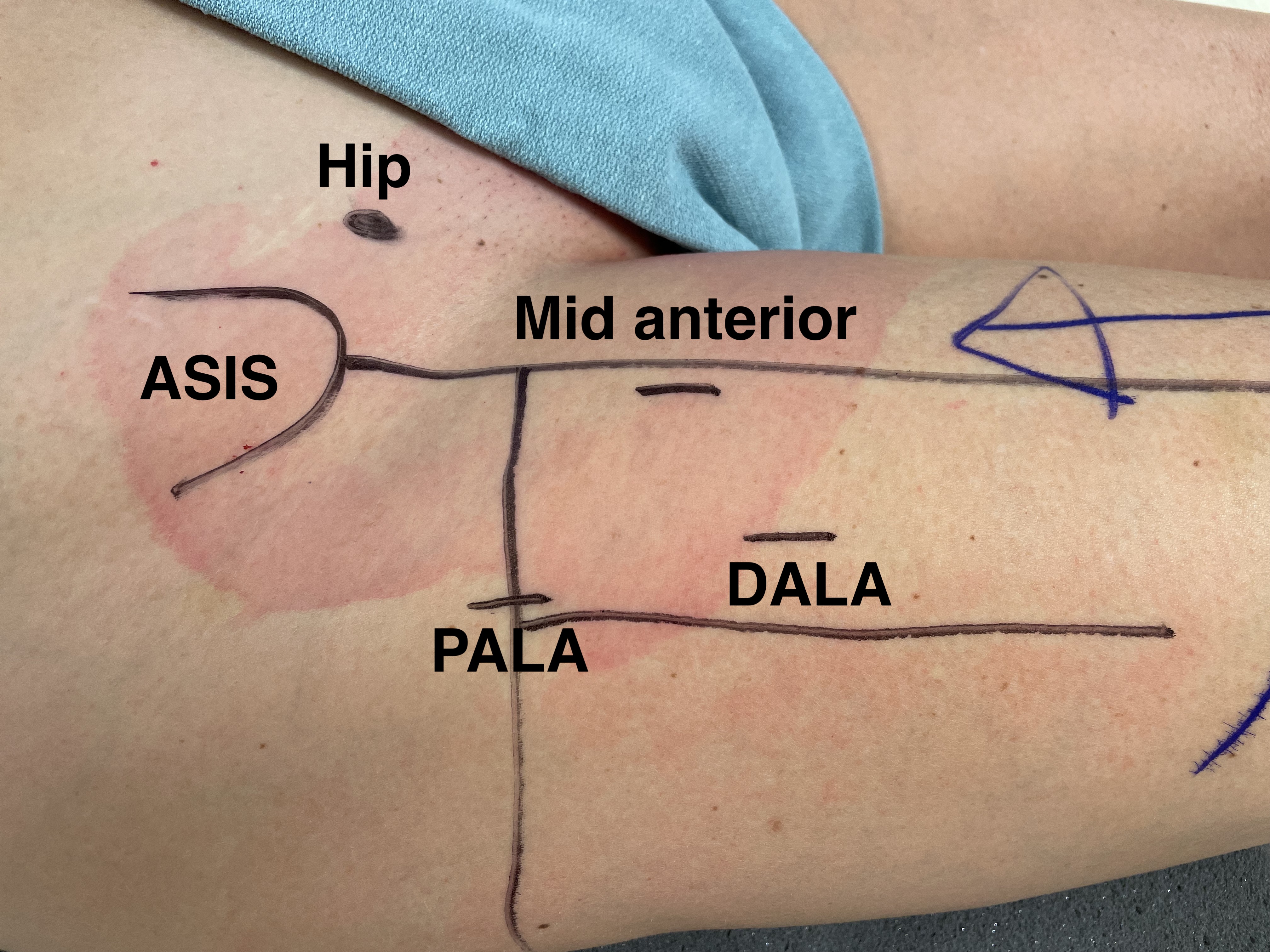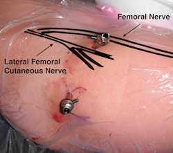 - stay lateral to line drawn down from ASIS to prevent NV injury