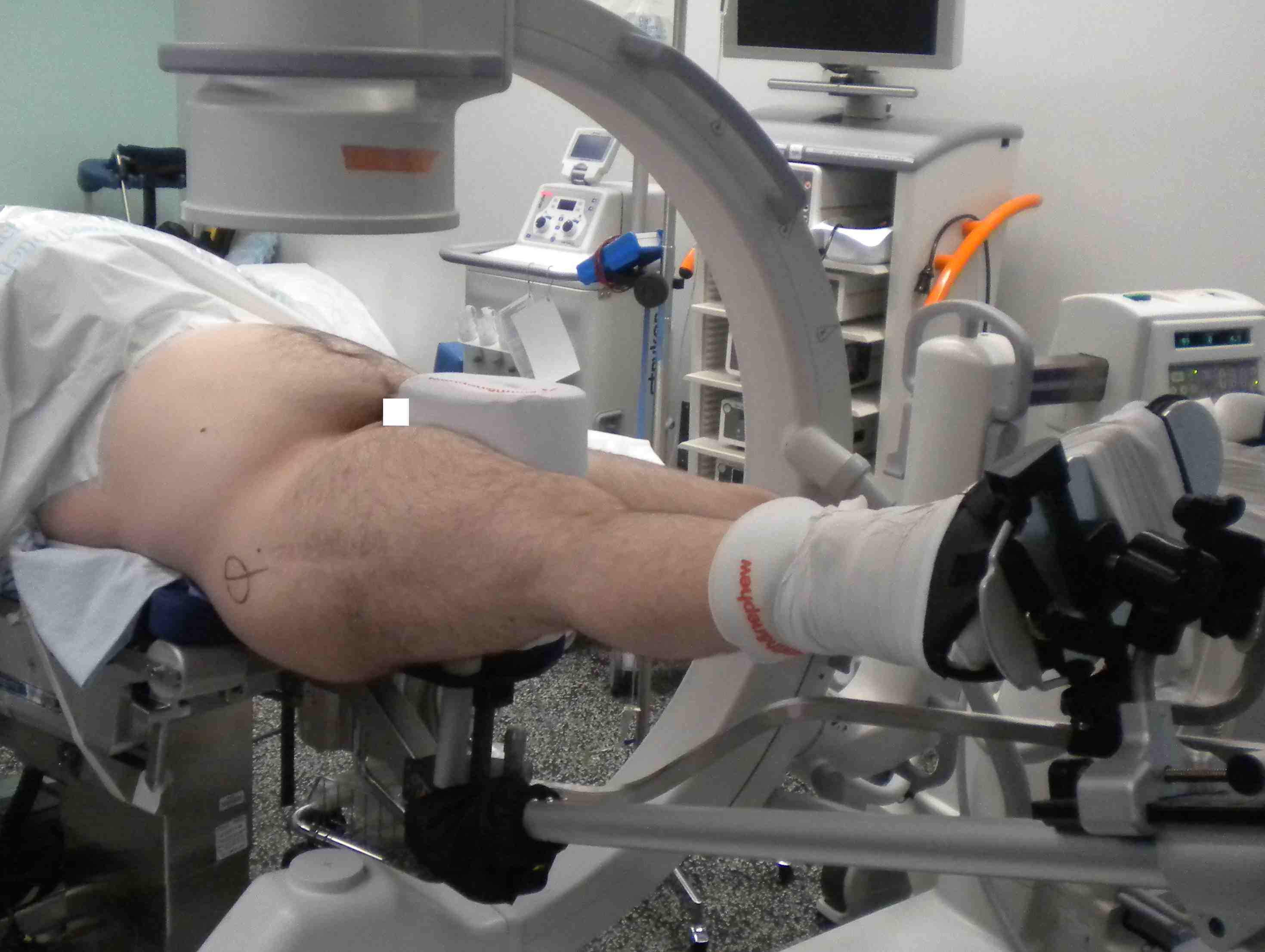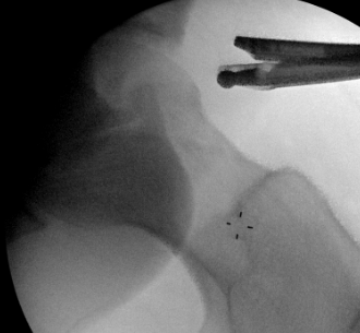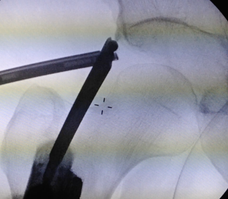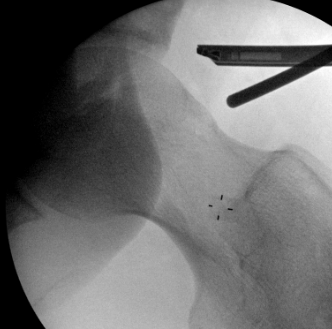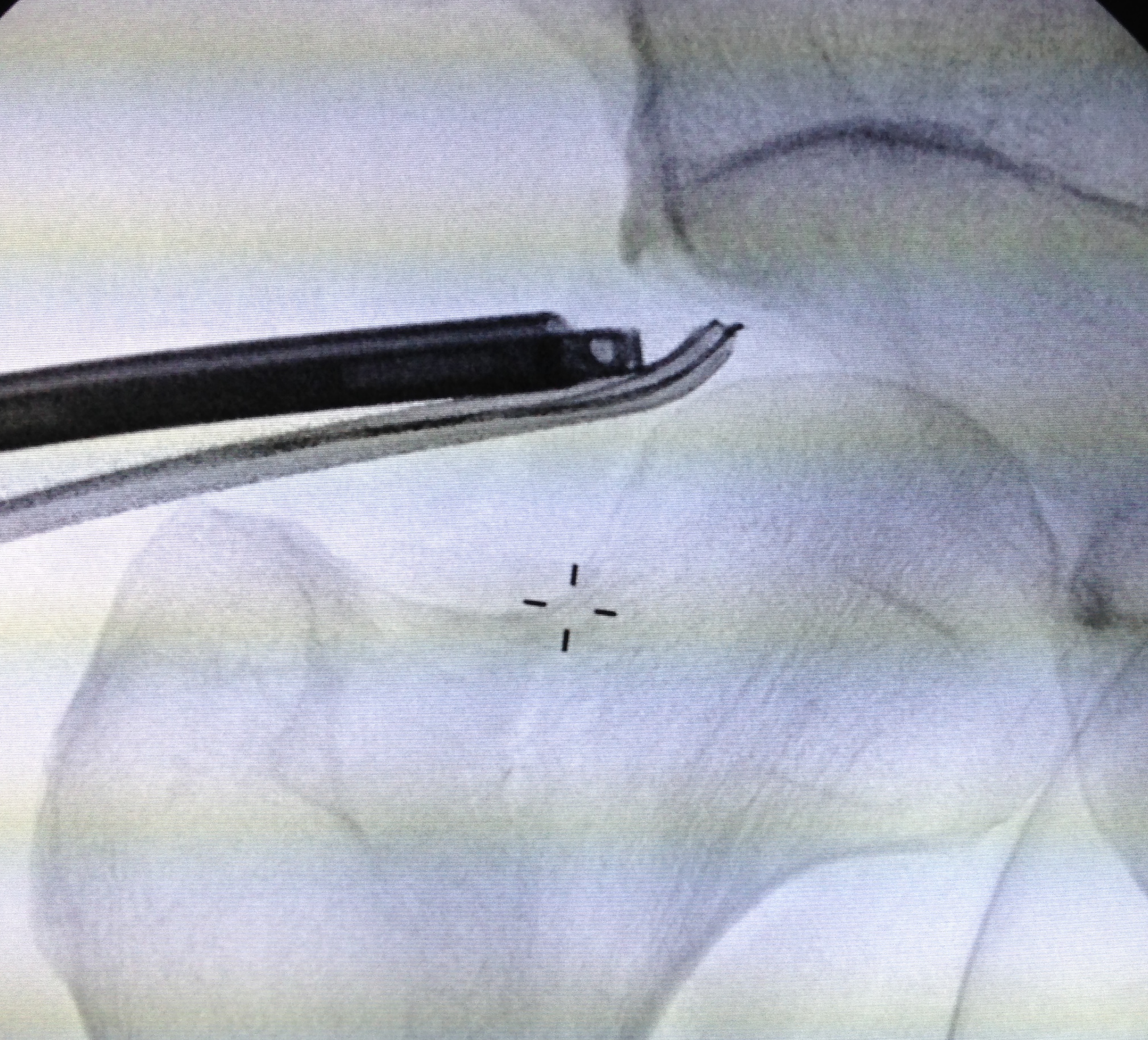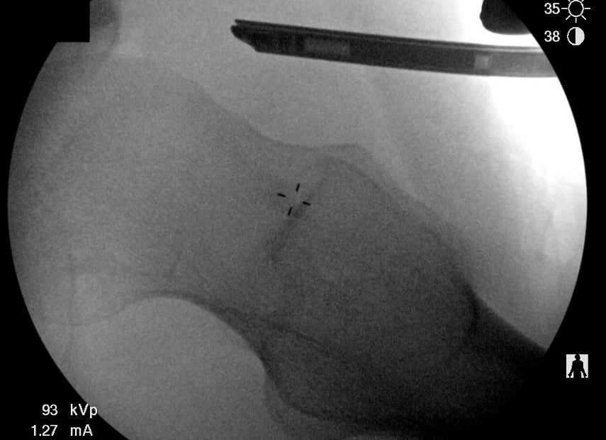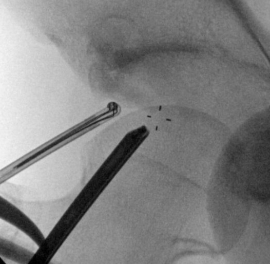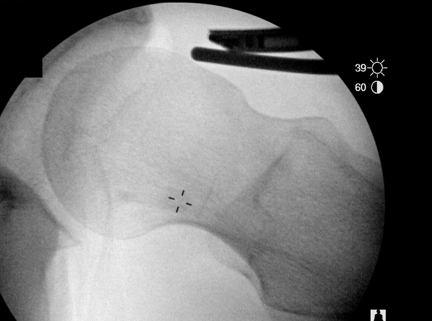 - image intensifer rotated 20 degrees posterior and 20 degrees distal to allow Dunn view