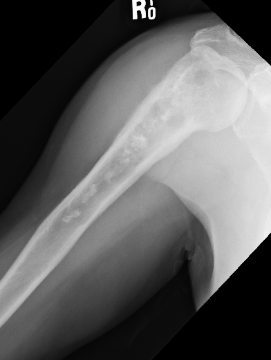 - also fibrous dysplasia / unicameral bone cyst / Paget's / post radiotherapy