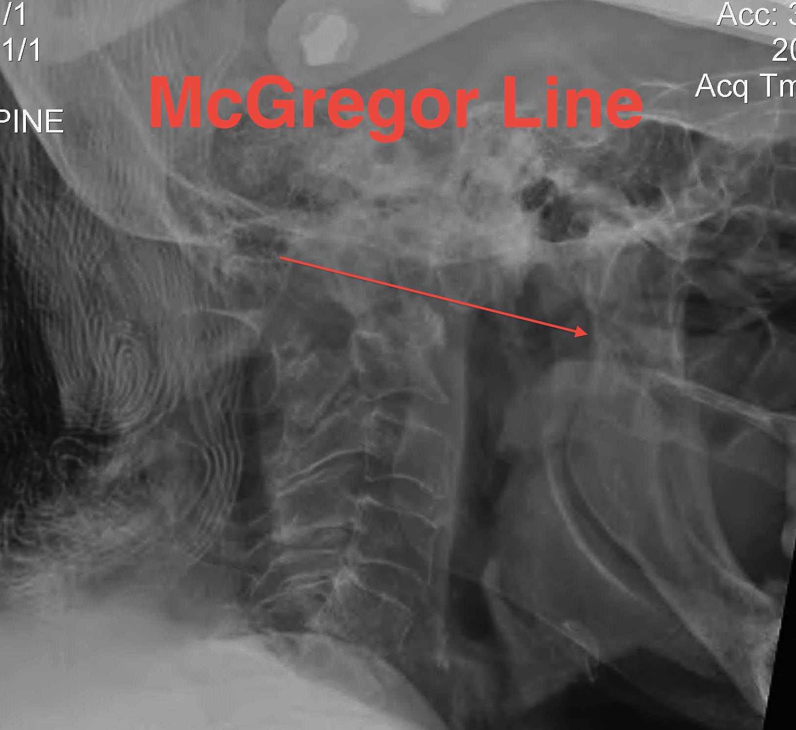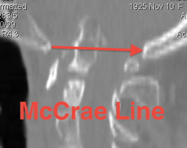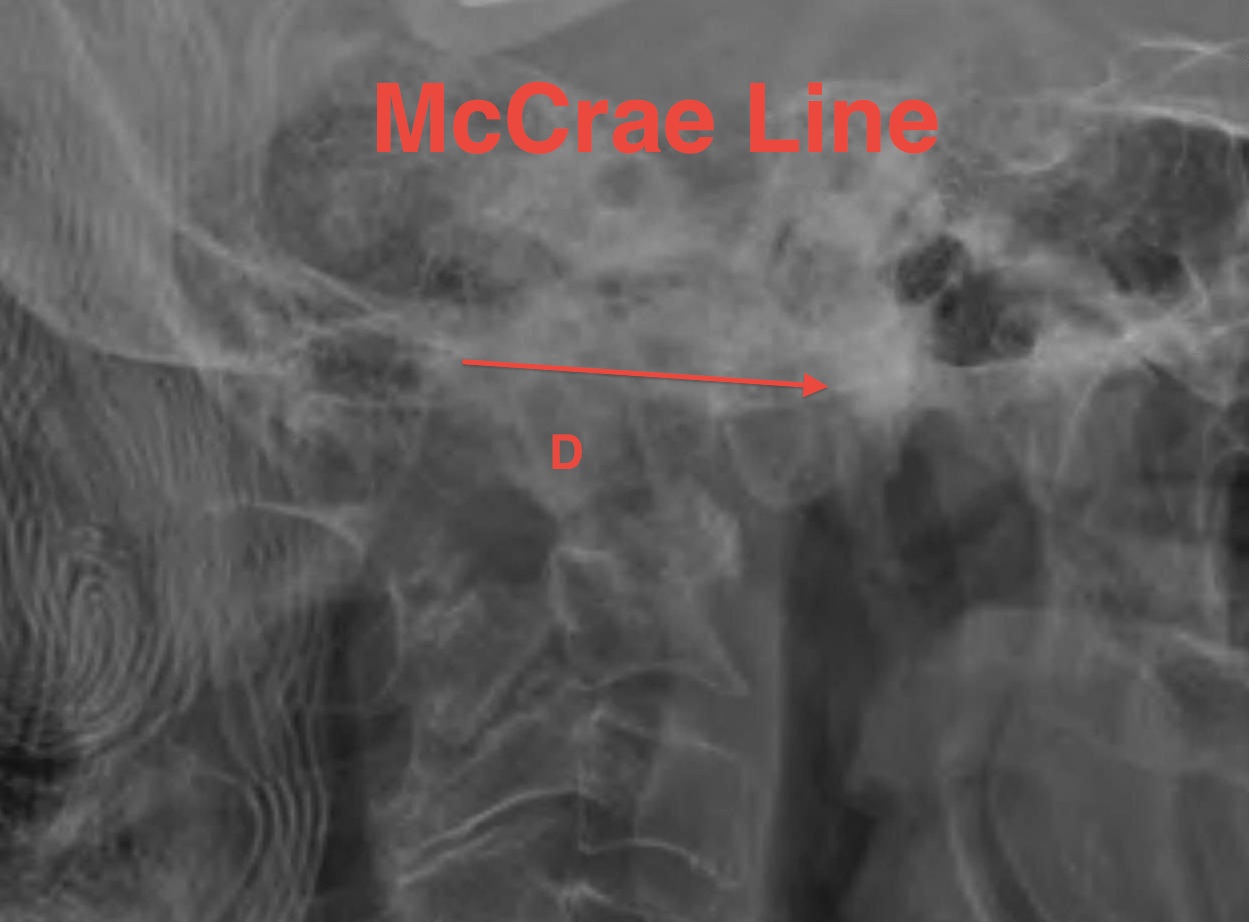 - tip of odontoid should not protrude above this line