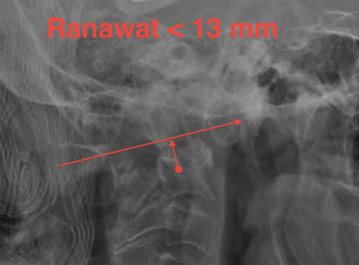 Vertical subluxation (VS) / Basilar Invagination - Ranawat < 13 mm