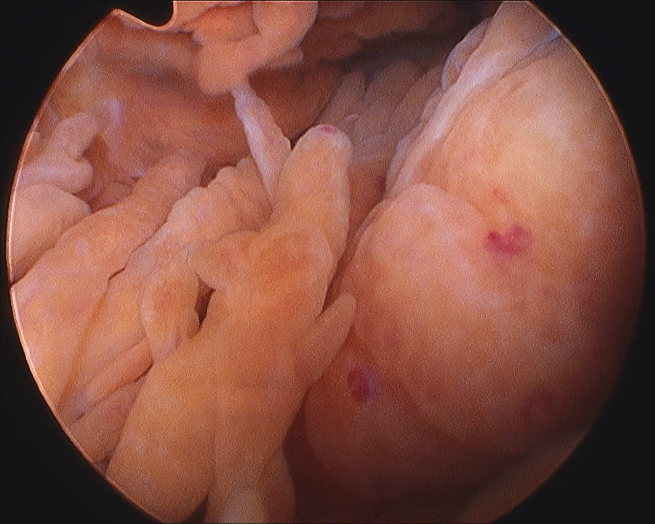 Blood tinged fluid in absence of trauma