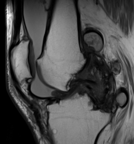 Diffuse PVNS with involvement of suprapatella pouch and posterior compartments, including posterior extra-articular