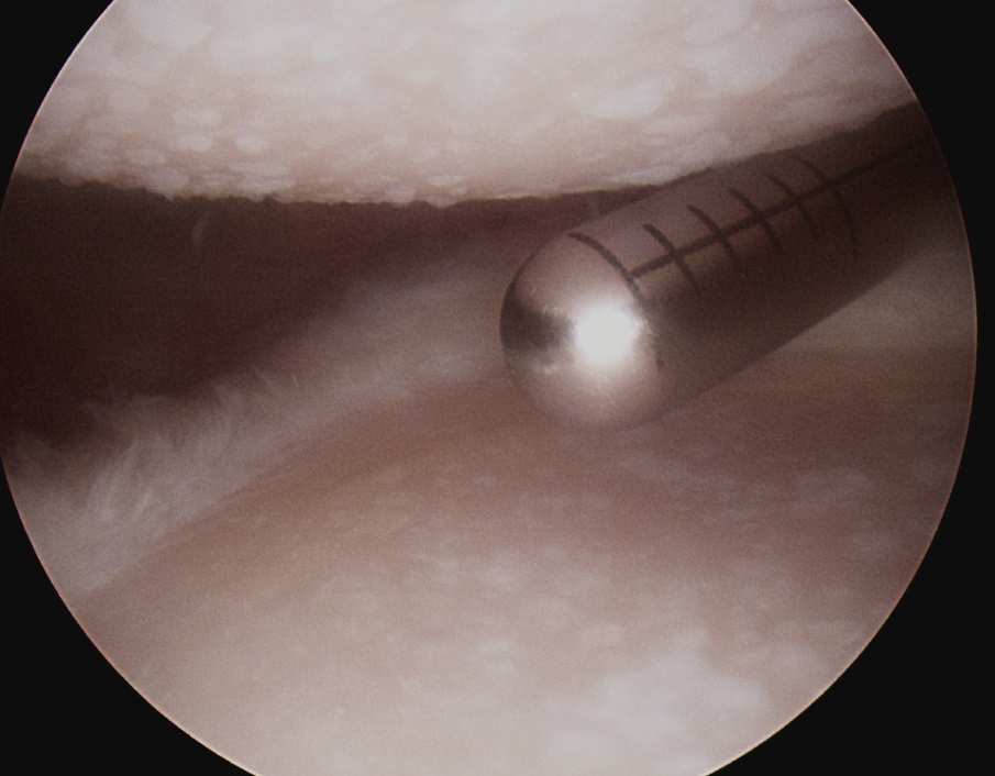 Inferior and lateral to posterior portal Alows placement of the inferior posterior anchors |