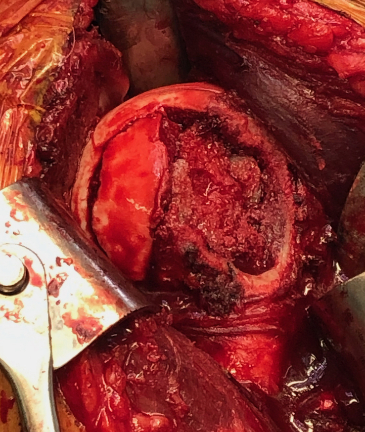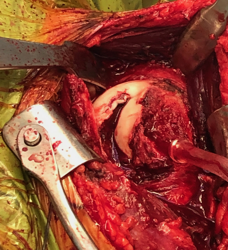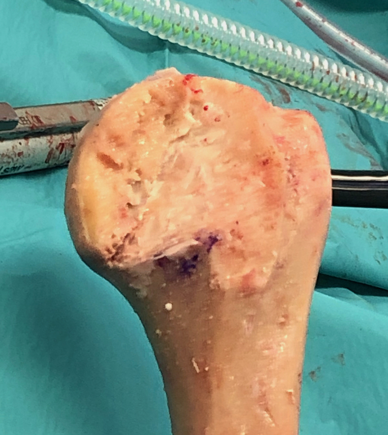 Case 1: Lesser tuberosity osteotomy, removal comminuted articular fragment, insertion osteochondral allograft