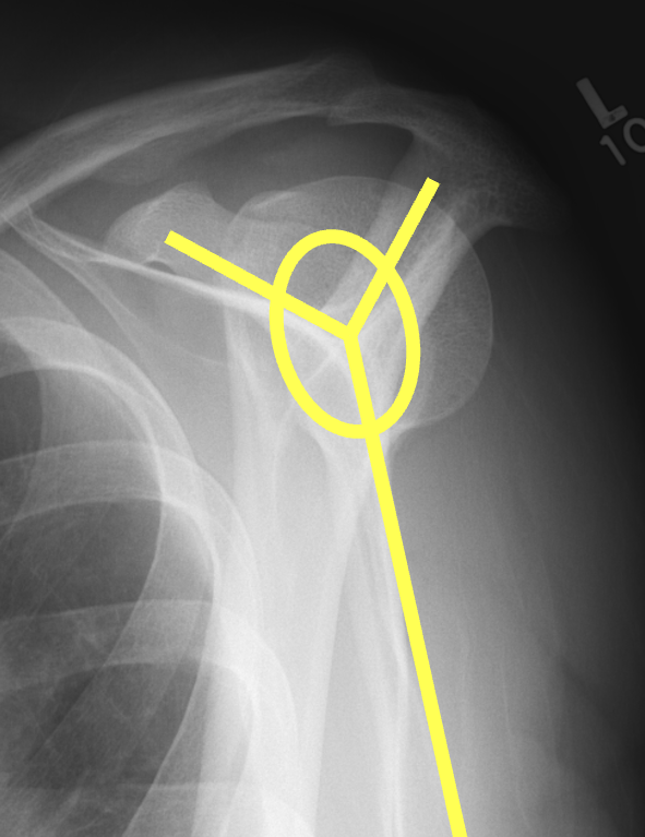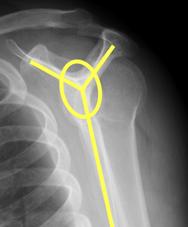 Center of the humeral head must be centered on the Y / Mercedes sign