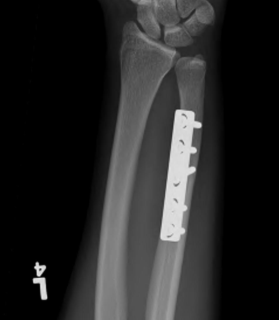 - high level of plate irritation and removal with ulna shortening ostetomy
