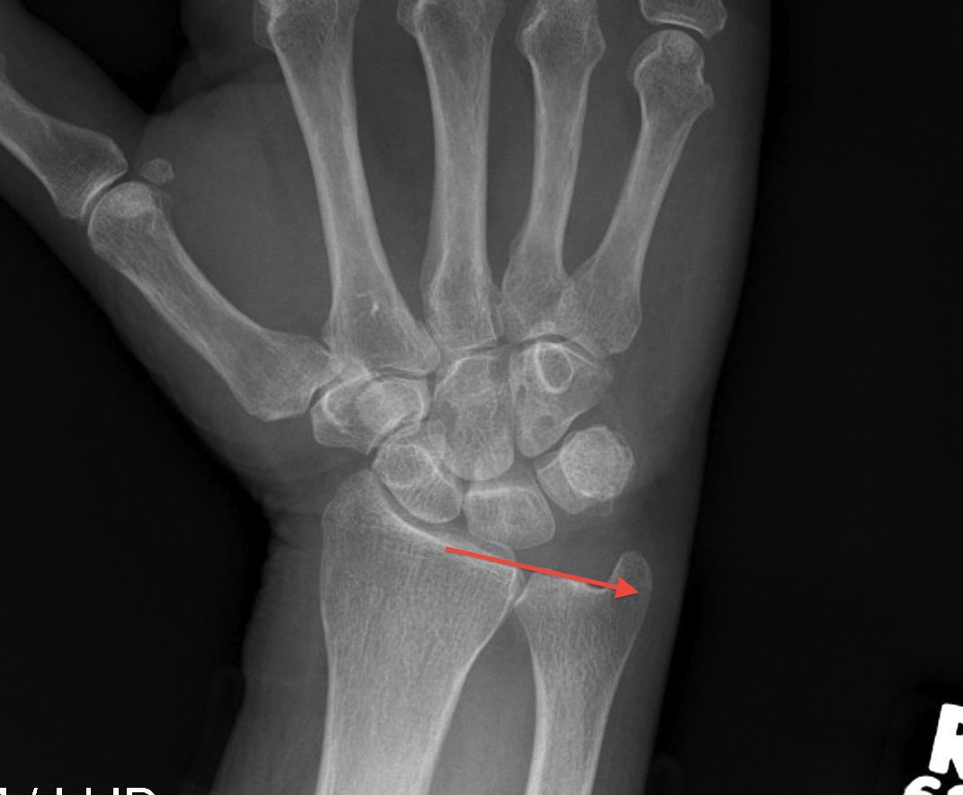 b: Ulna avulsion +/- ulna styloid fracture - can be associated with DRUJ instability