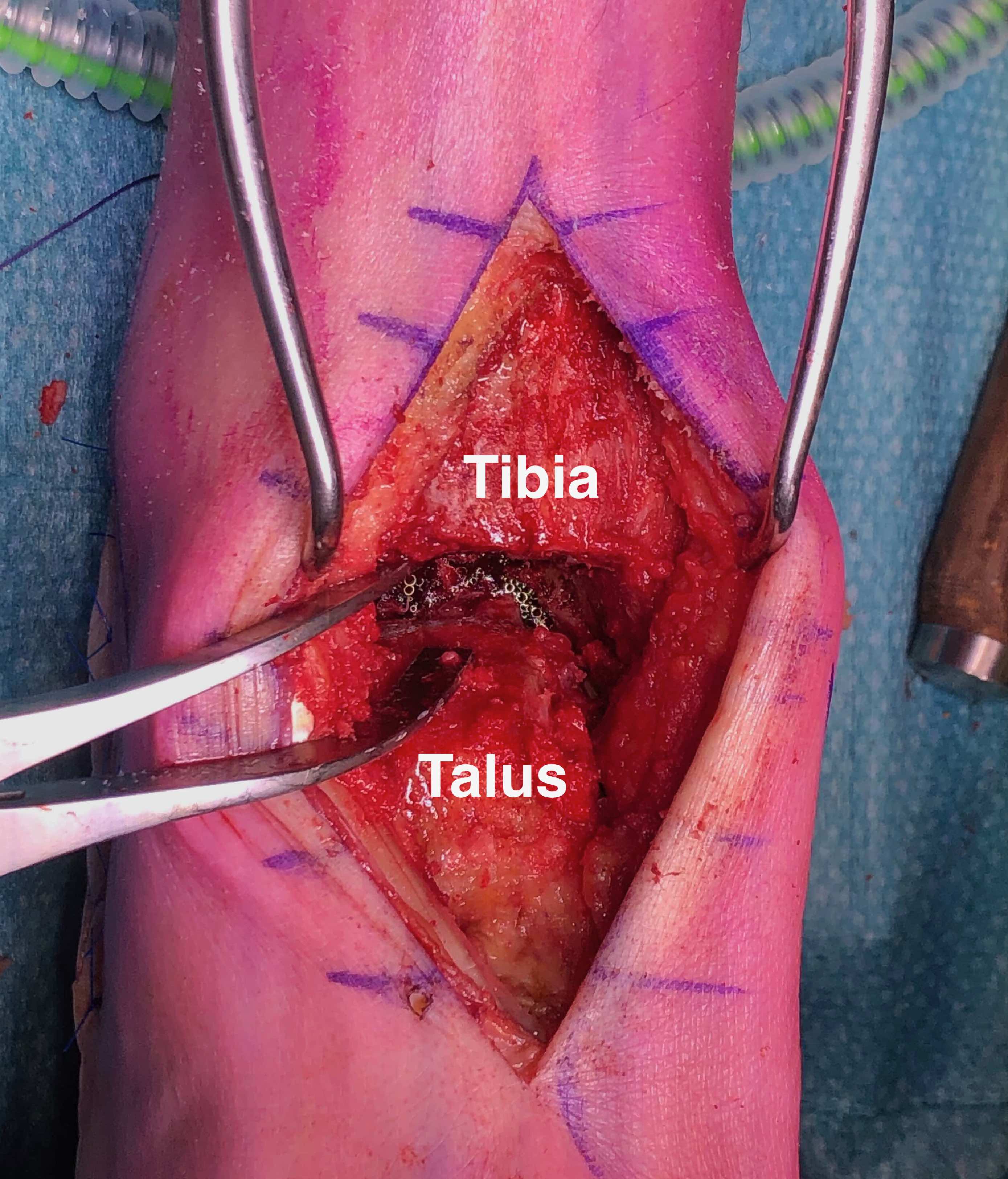 - tibia and talar pins and ankle distractor