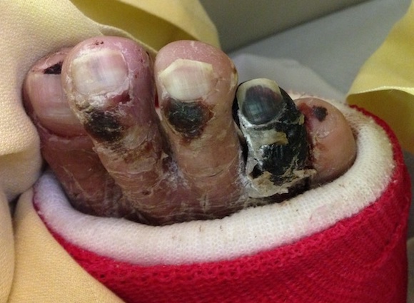 Partial foot gangrene | Whole foot gangrene |