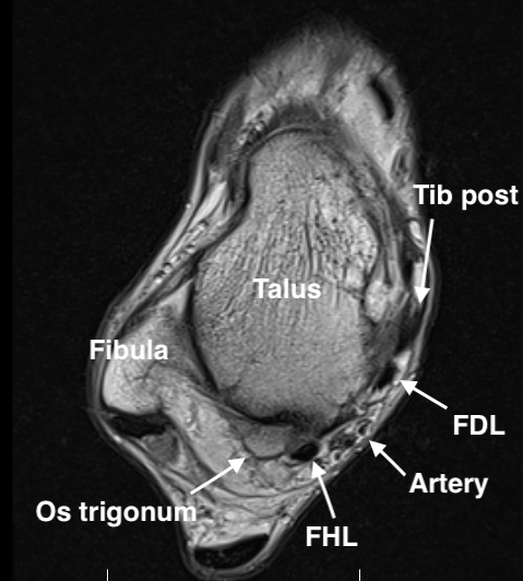 Os trigonum                                                                      FHL tenosynovitis with posterior ankle joint soft tissue