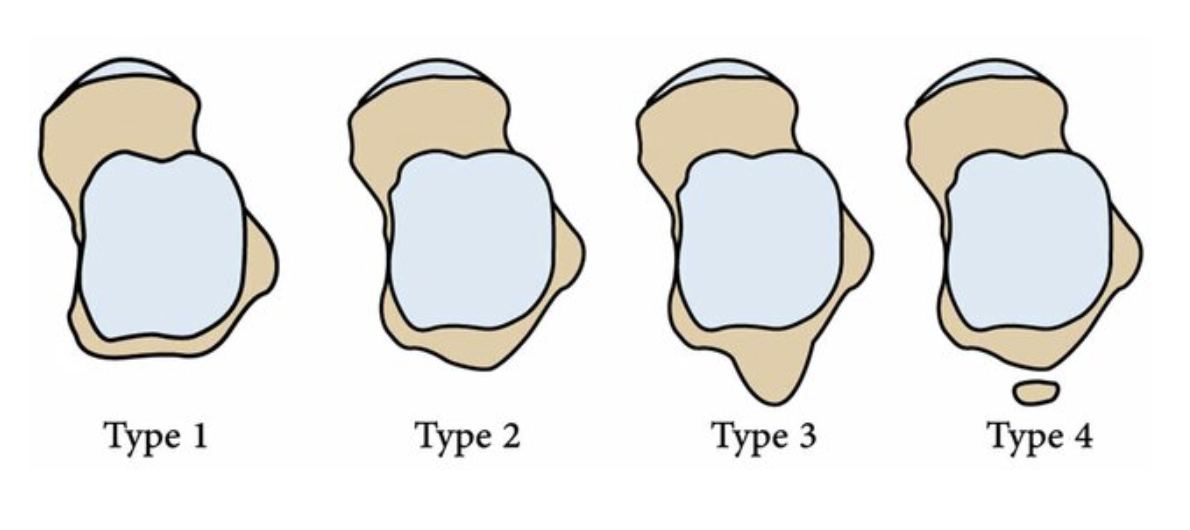 - Type 3: Stieda's process / elongated lateral tubercle 26%
