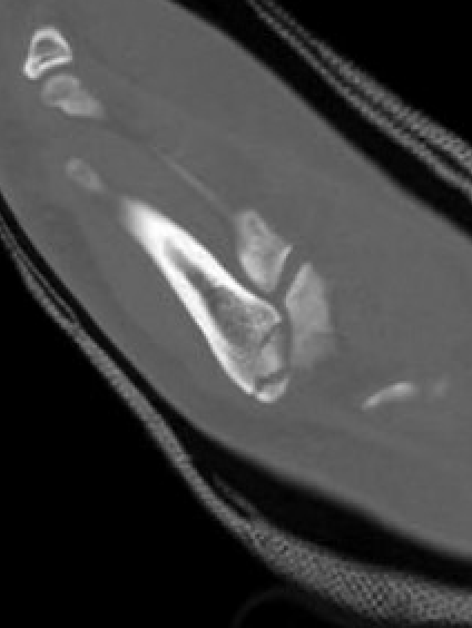 Narrow fracture line No sclerosis No cortical reaction No periosteal hypertrophy |