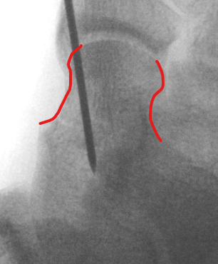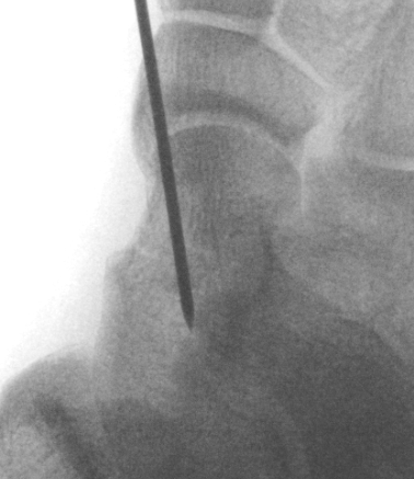 - from medial malleolus to talonavicular joint / base first metatarsal