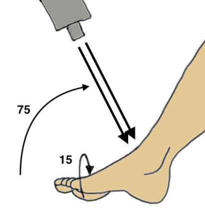 Angles medially 10 - 44 Angles plantar 5 - 50 |