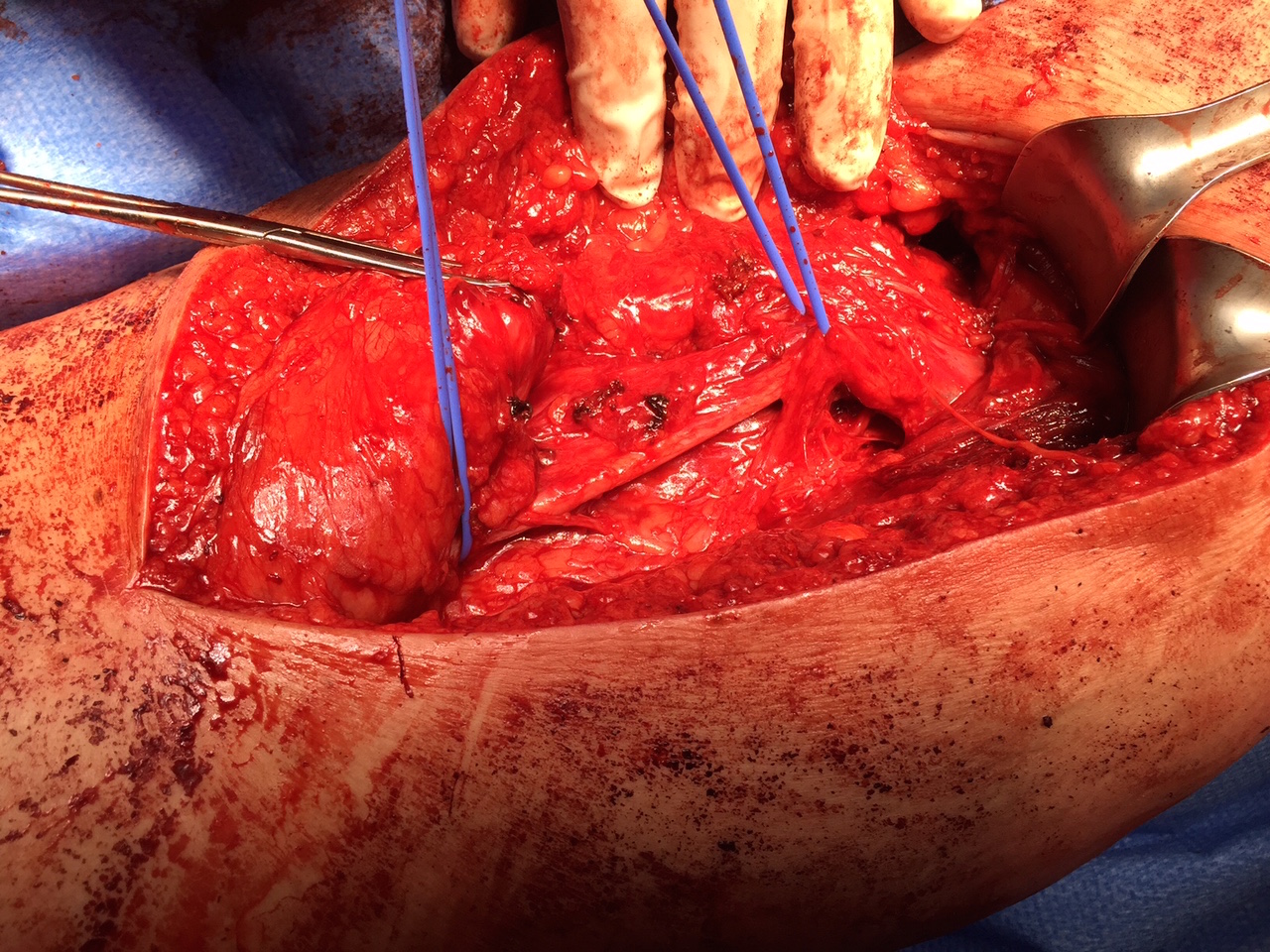 - identify and preserve sciatic nerve (lateral to hamstring)