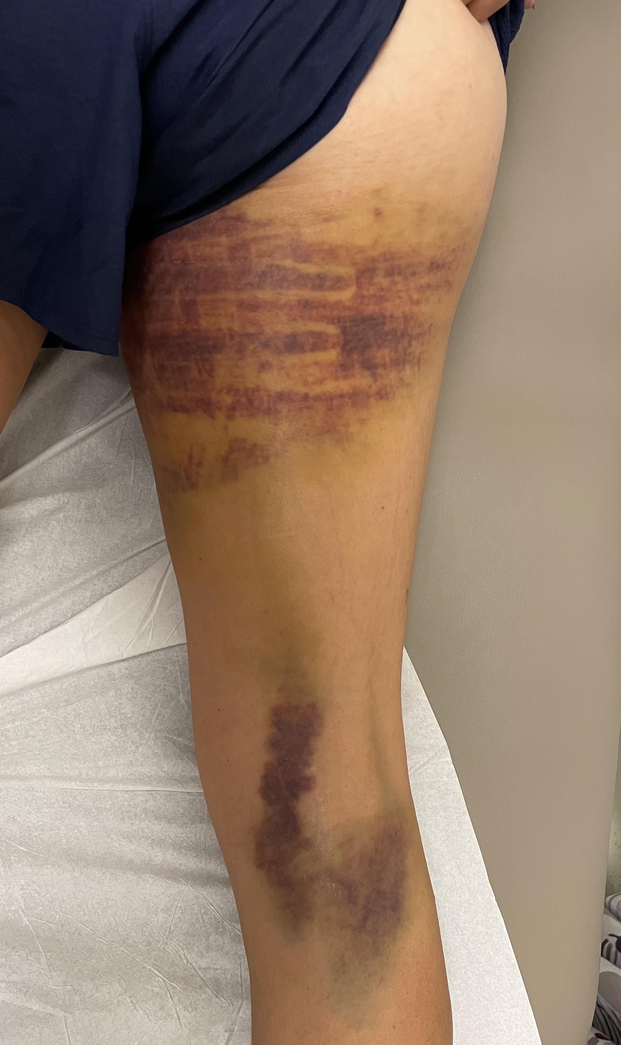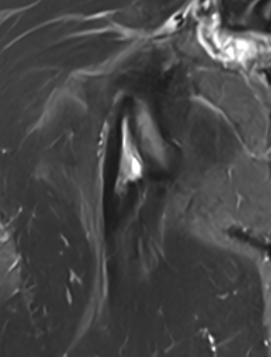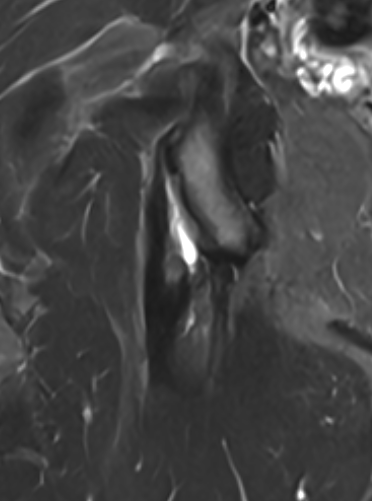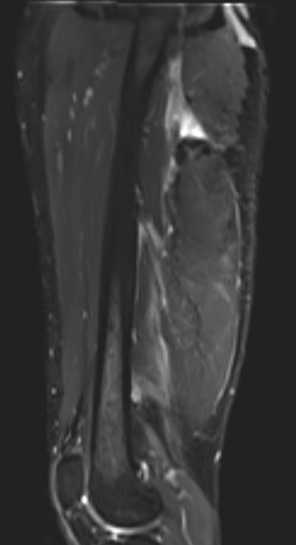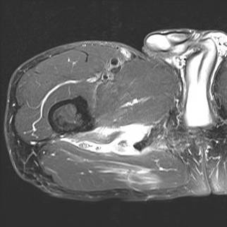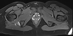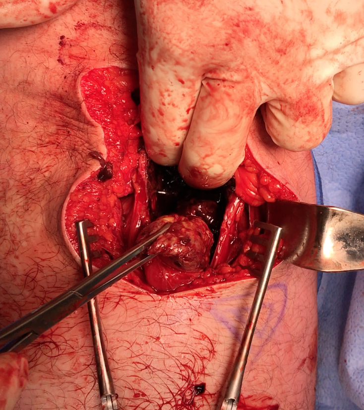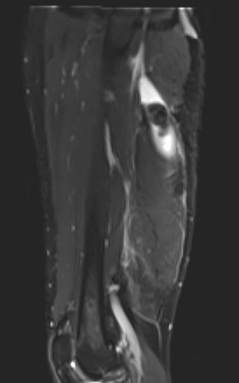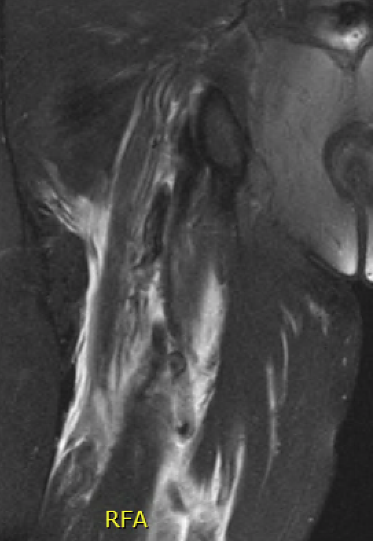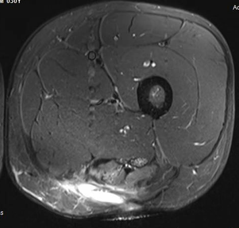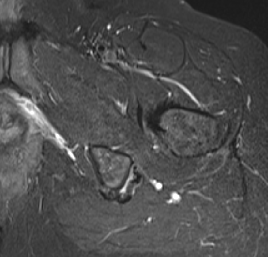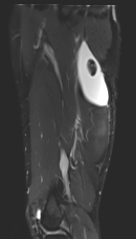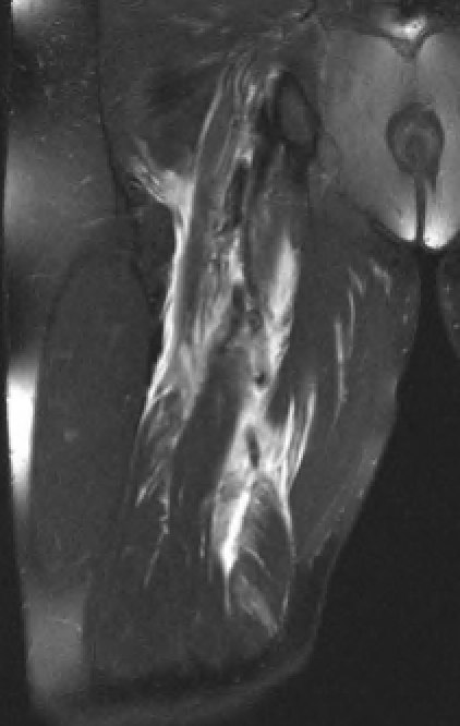 Proximal hamstring avulsion, with tendon floating in hematoma / seroma