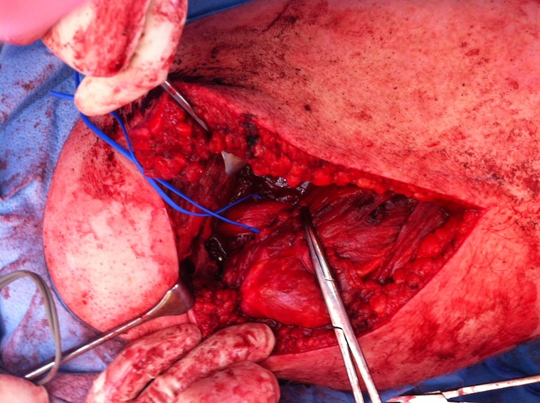 - longitudinal incision - better for retracted or chronic injury, find and protect sciatic nerve distally