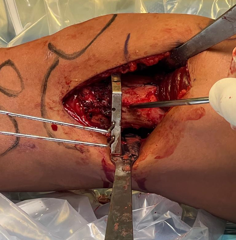 - release intermuscular septum posteriorly at metaphyseal-diaphyseal junction
