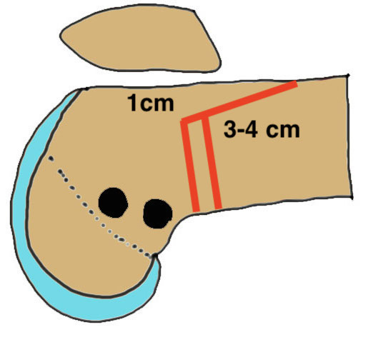 - risk of medial hinge fracture reduced if osteotomy at or distal to adductor tubercle