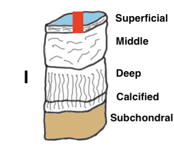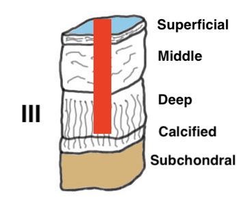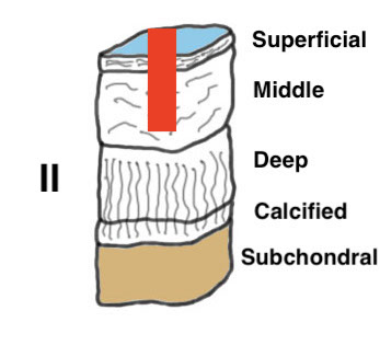 Grade II: Abnormal - cartilage lesions < 50% of cartilage depth