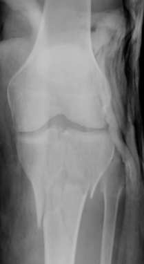 - always 10 - 15 mm distal to joint line to avoid proximal joint capsule