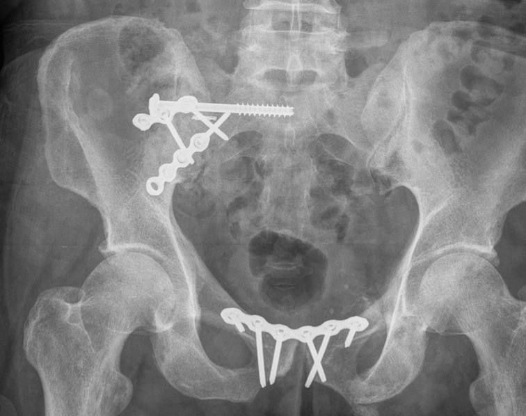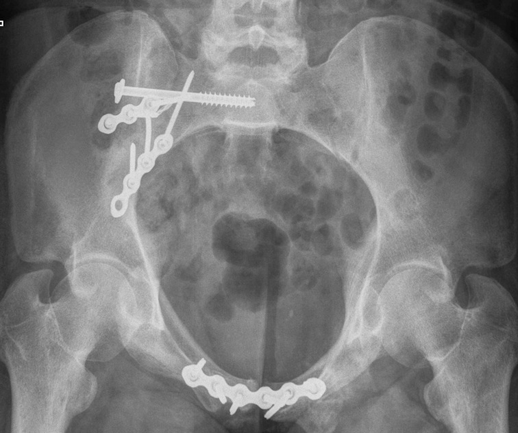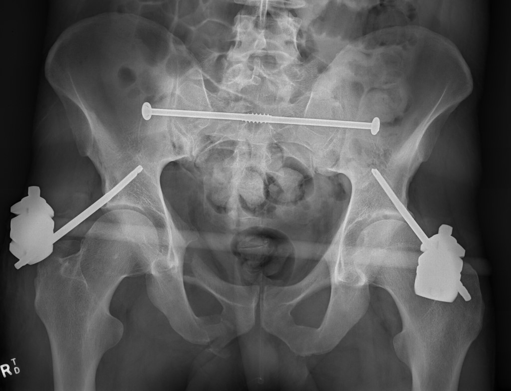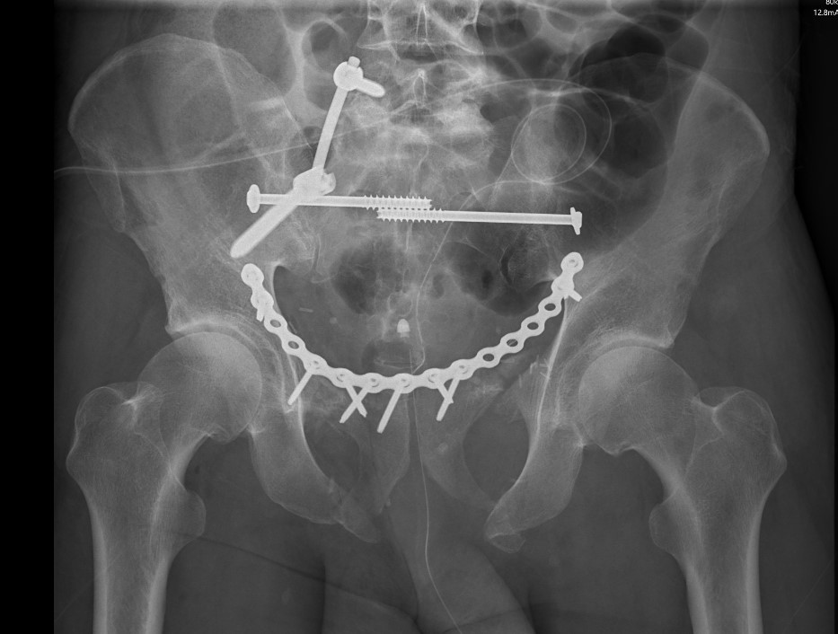 LC-1 with anterior external fixation Plating of bilateral pubic rami fractures