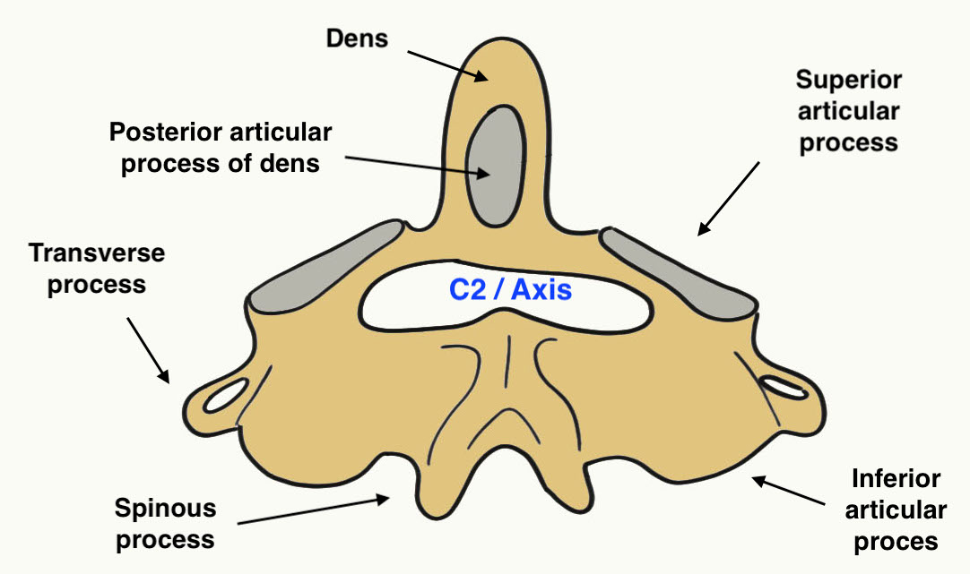 | Apical ligament | Tip of dens to anterior foramen magnum | |