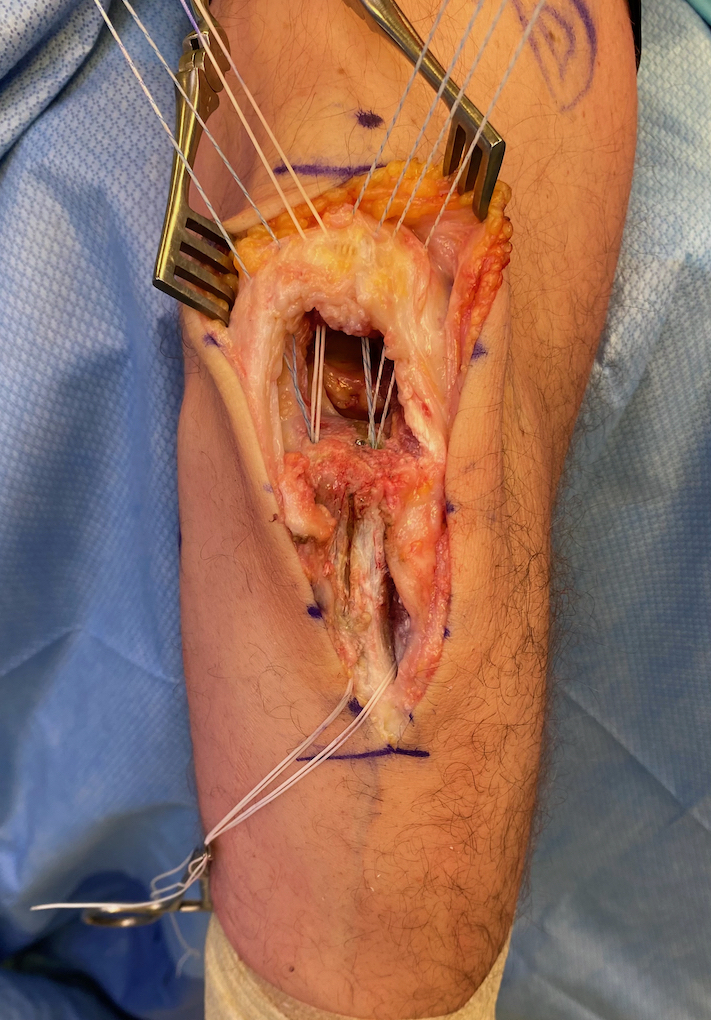 Anatomic triceps repair with proximal suture anchors and double row transosseous repair