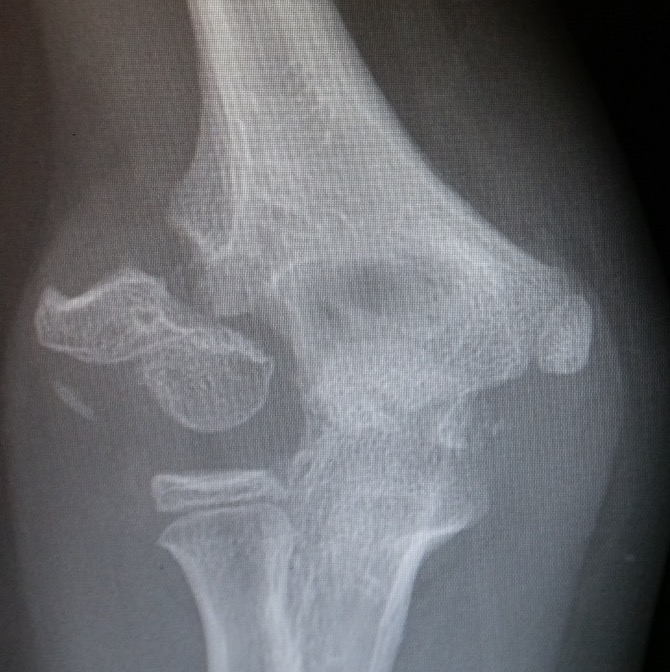 - nonoperative management of lateral condyle fractures < 2 mm displaced