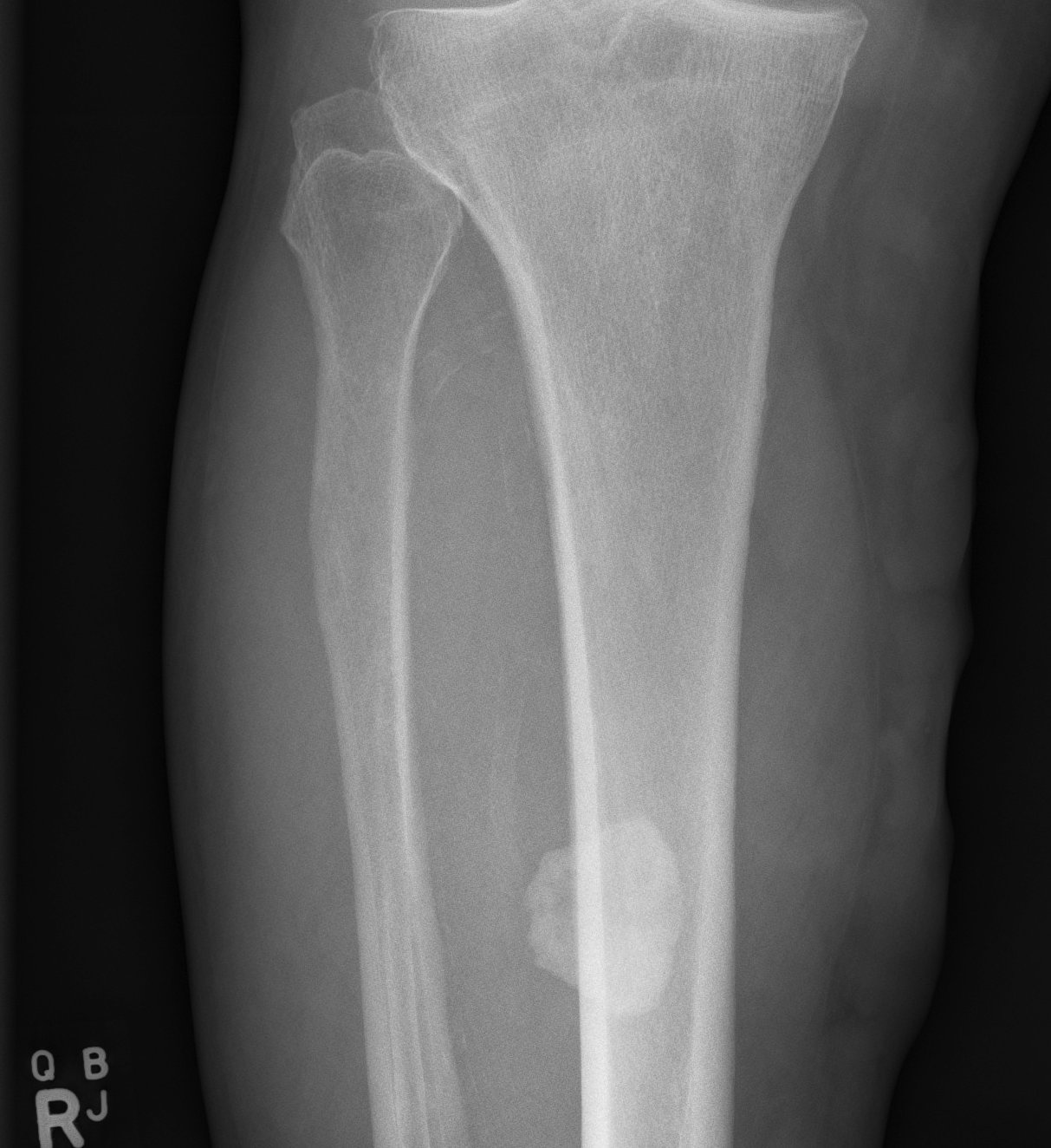 - mature bone peripheral with central fibrous tissue (OS mature centrally)