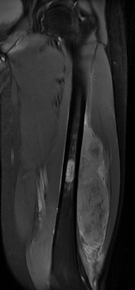 Ewing's femoral diaphysis, subtle on xray with large soft tissue component