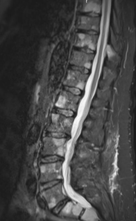3. Normal skeletal survey and MRI (or CT) of spine and pelvis