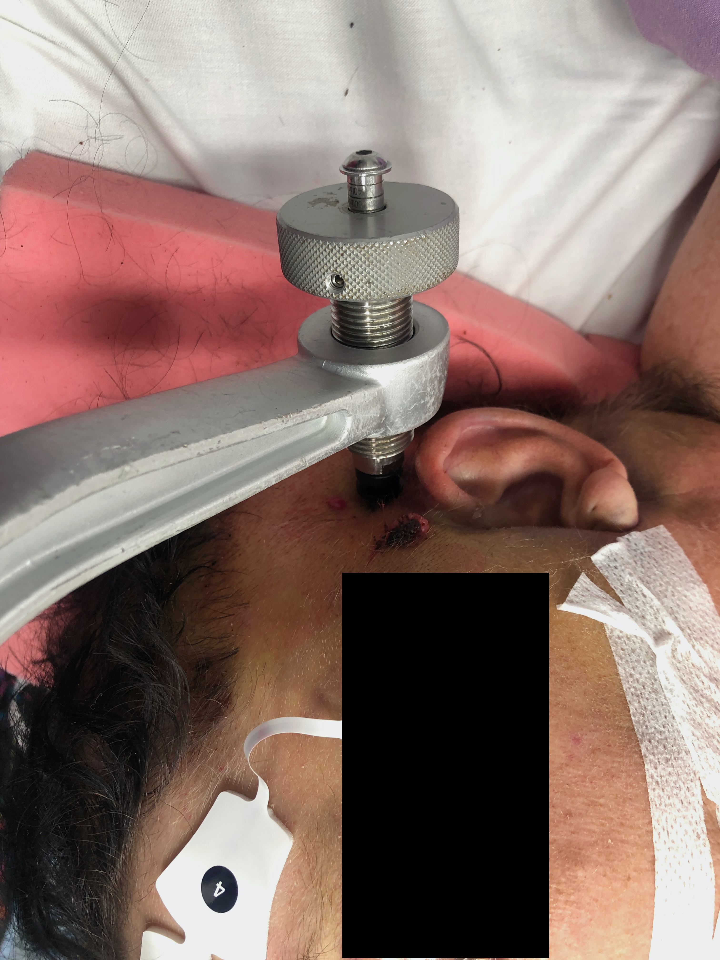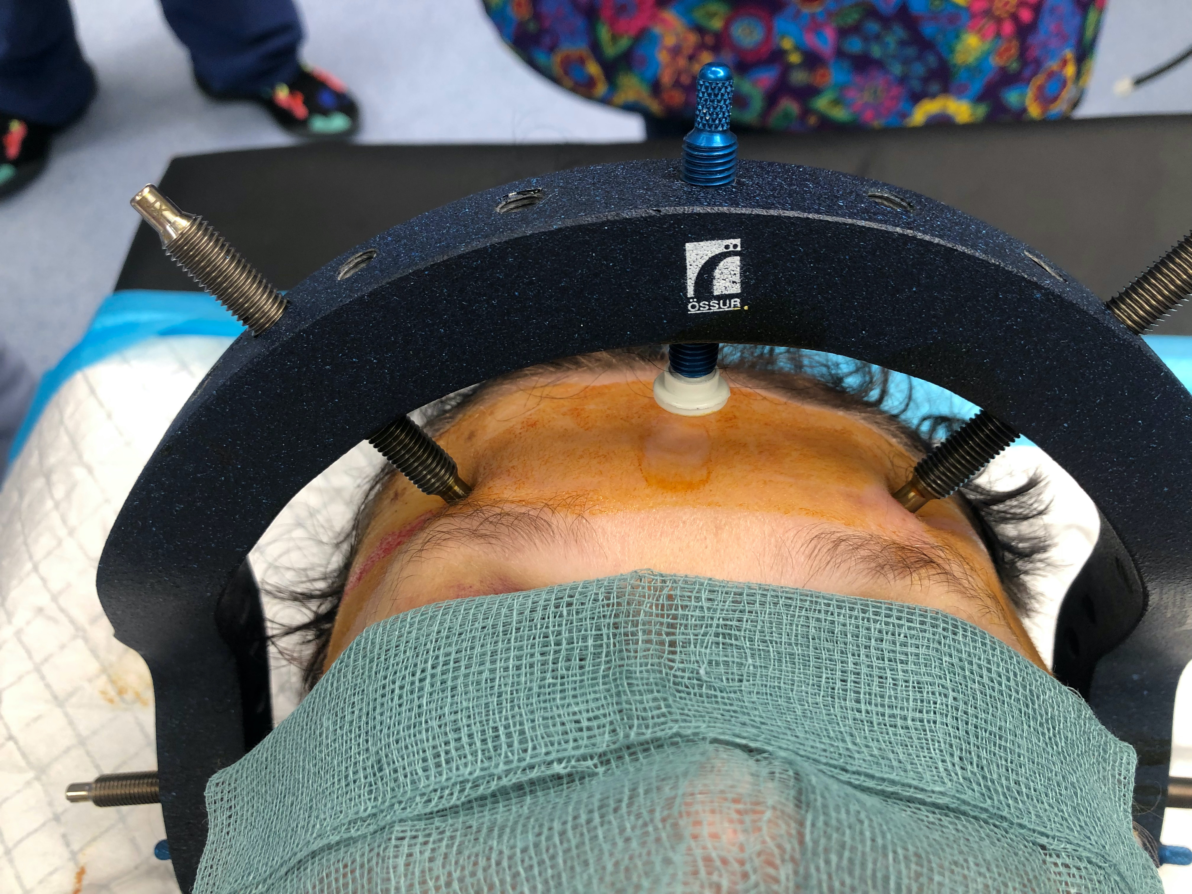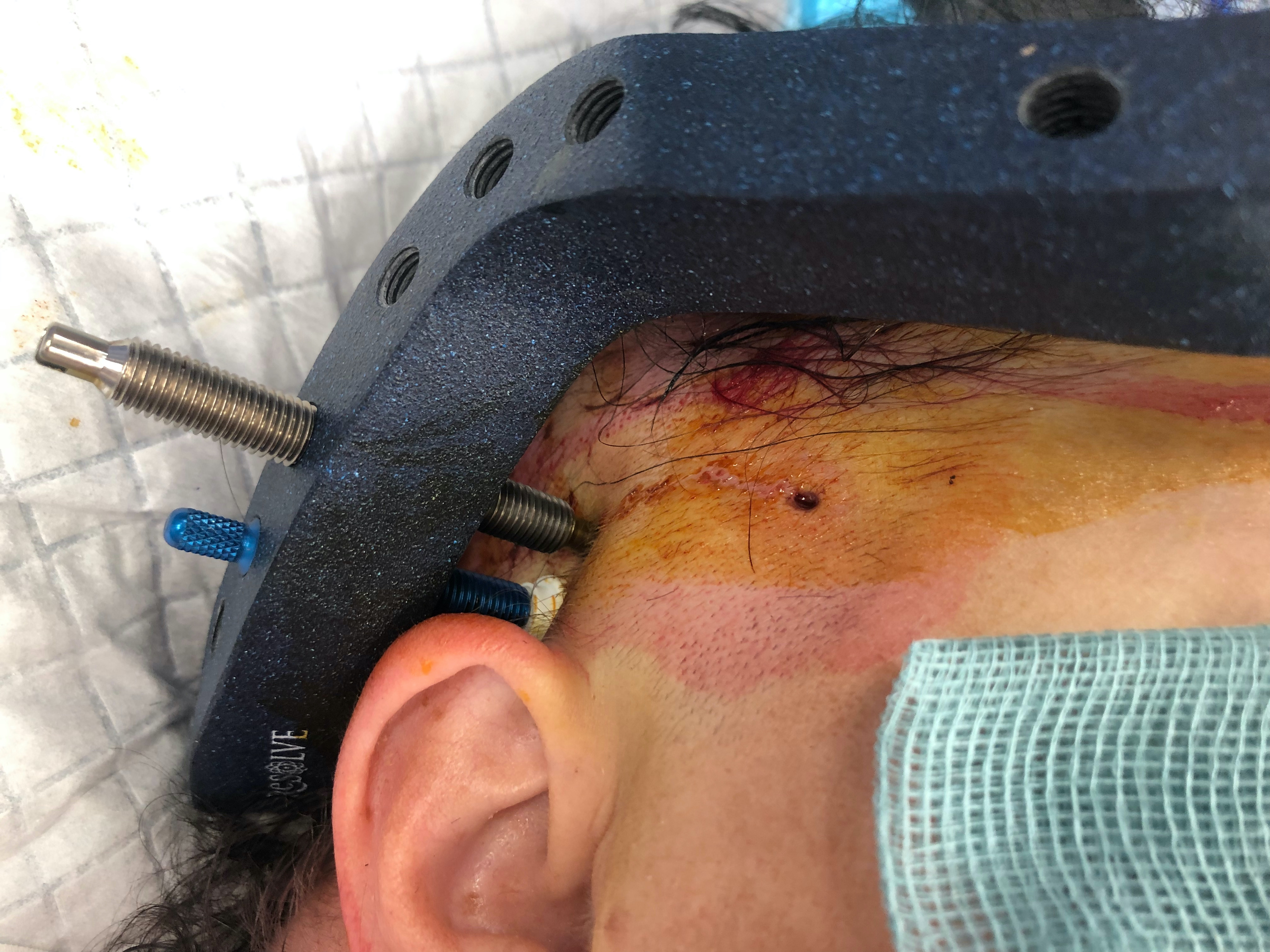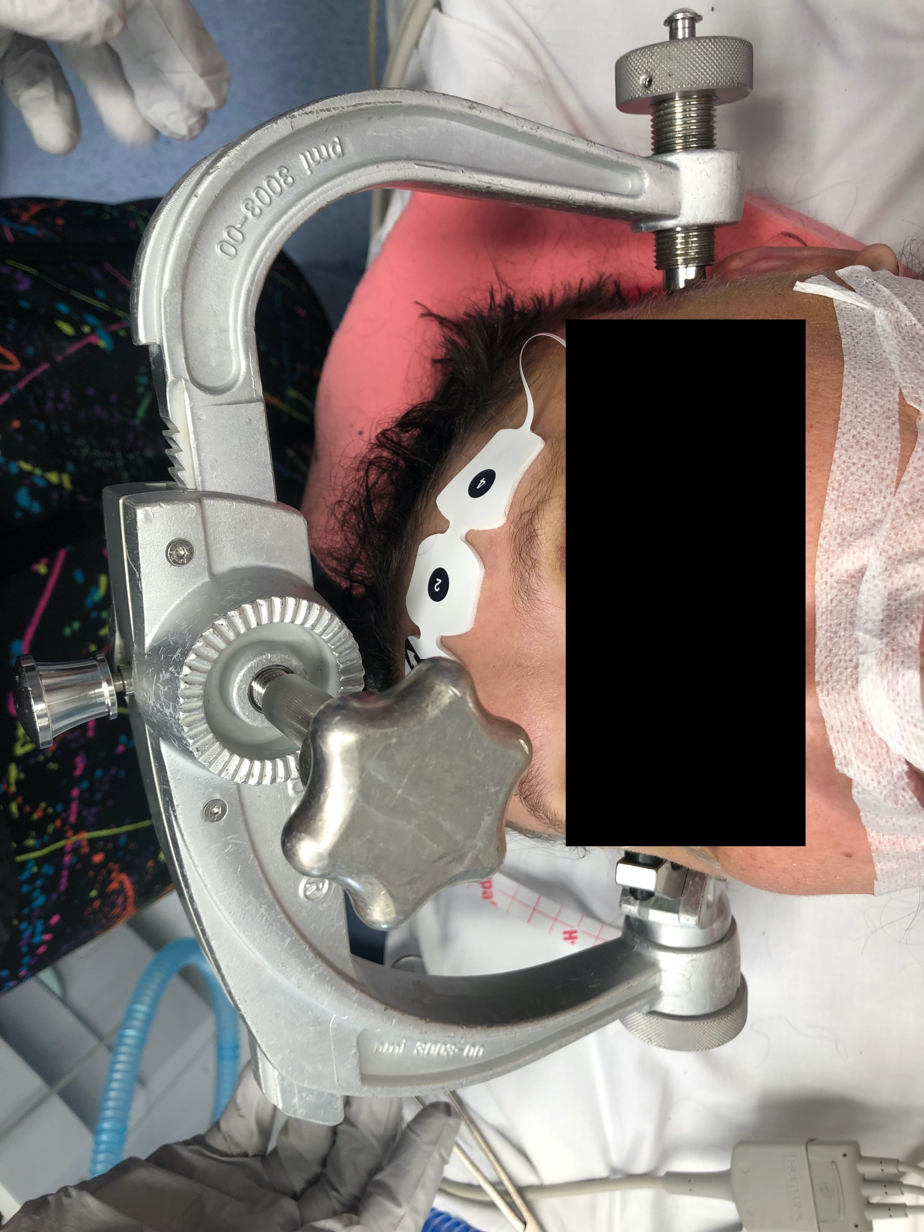 - must close eyes before supraorbital pins to avoid problems closing eyes