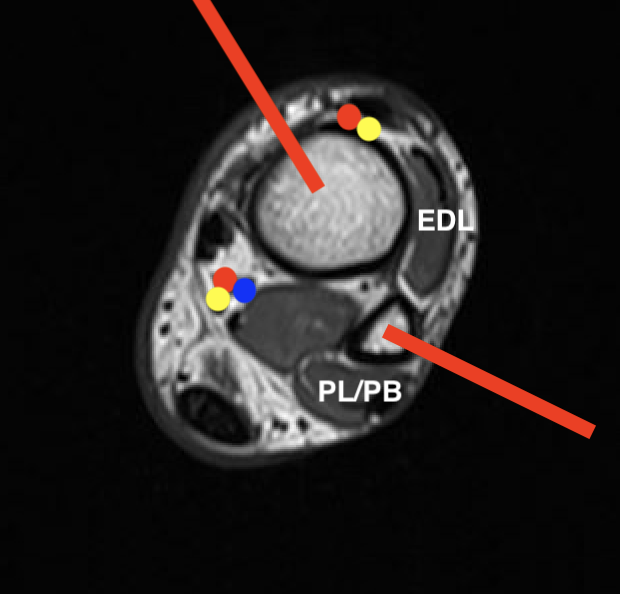 - lateral Ollier's approach between Peroneus tertius and Peroneus brevis