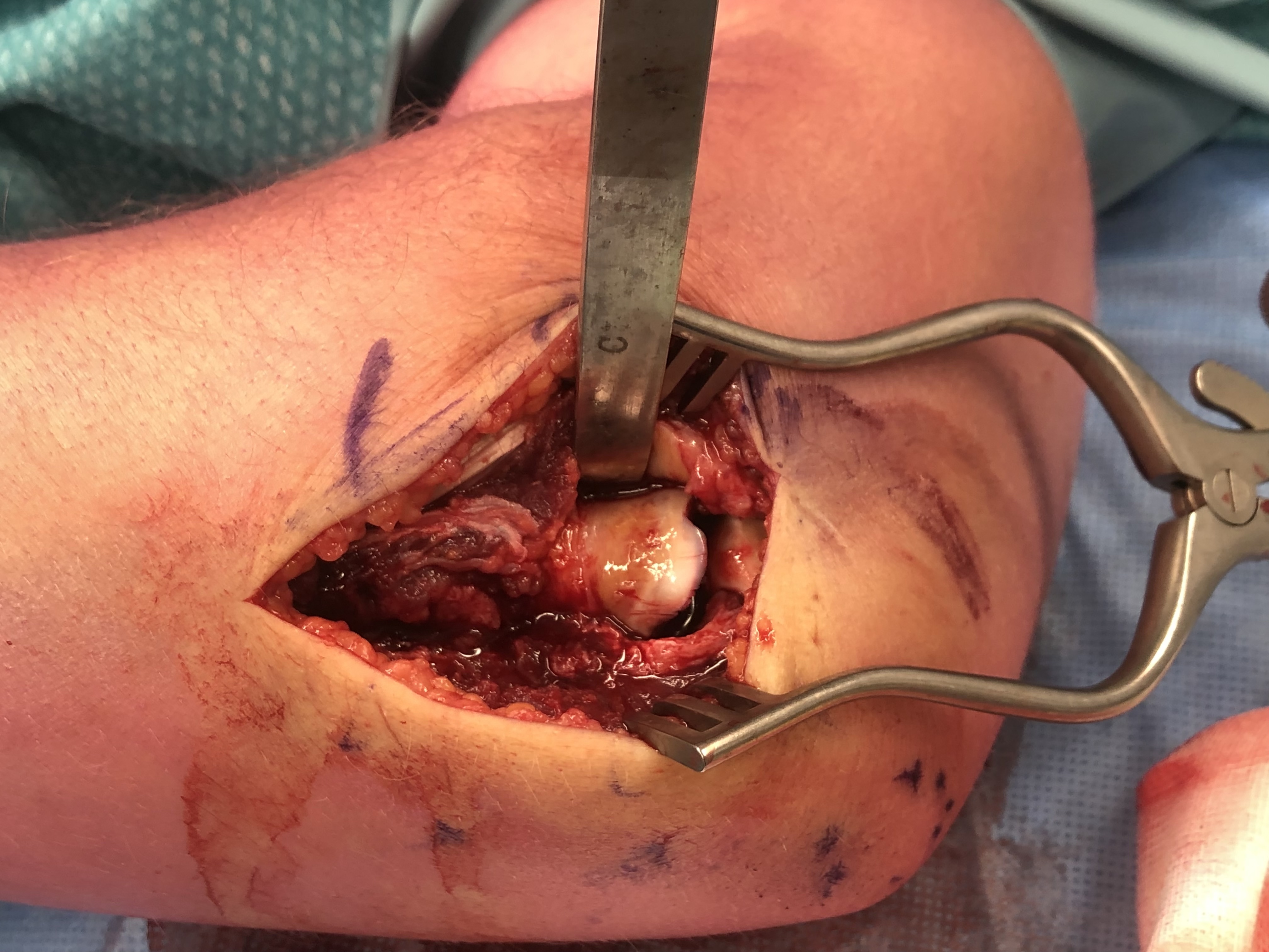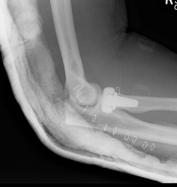 - increased lateral ulno-humeral joint line gapping with overlengthening of 2 mm