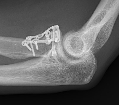 Terrible triad: radial head fracture, coronoid fracture, LCL injury