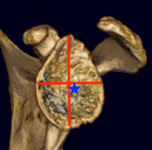 - glenoid center point slightly inferior and anterior to center of the articular surface glenoid