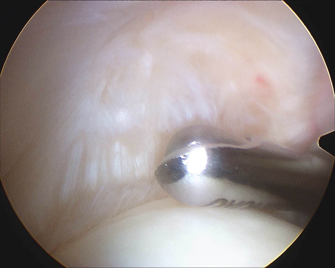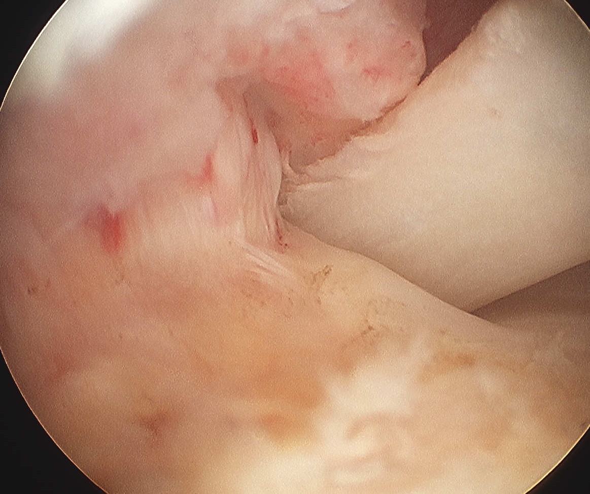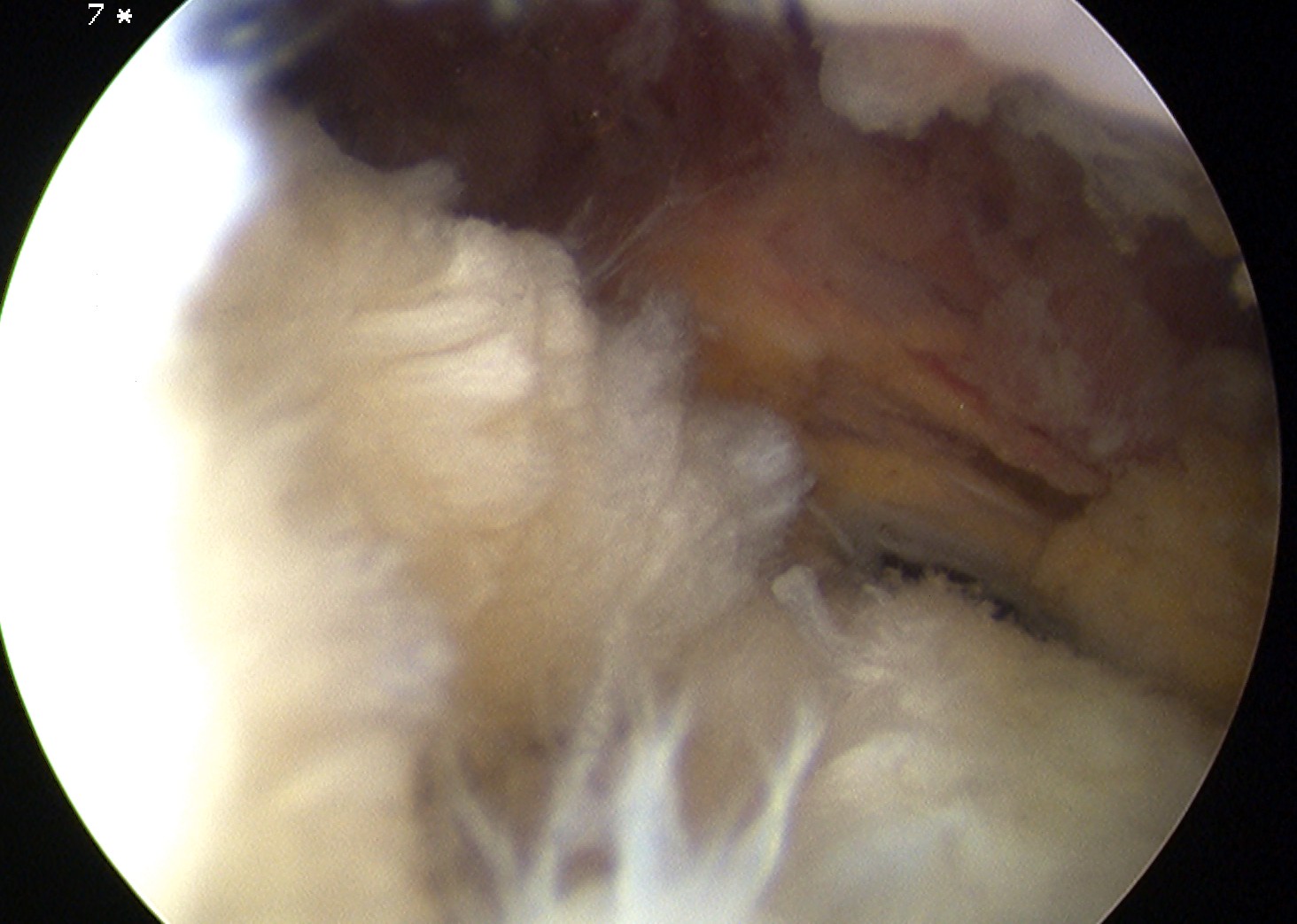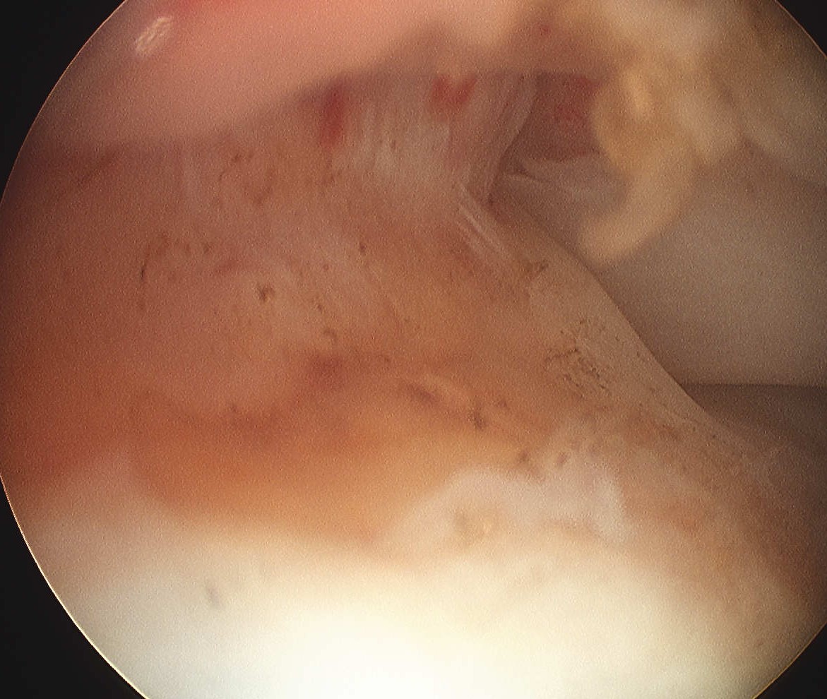 Normal insertion of undersurface of the rotator cuff onto the footprint, with camera in glenohumeral joint