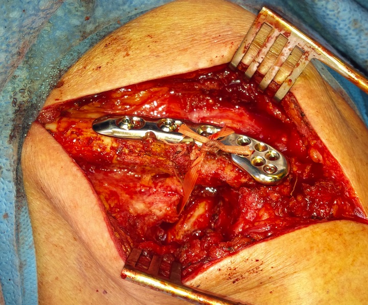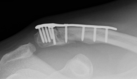 - 16 patients with locking plate versus 18 with plate + CC suture anchors