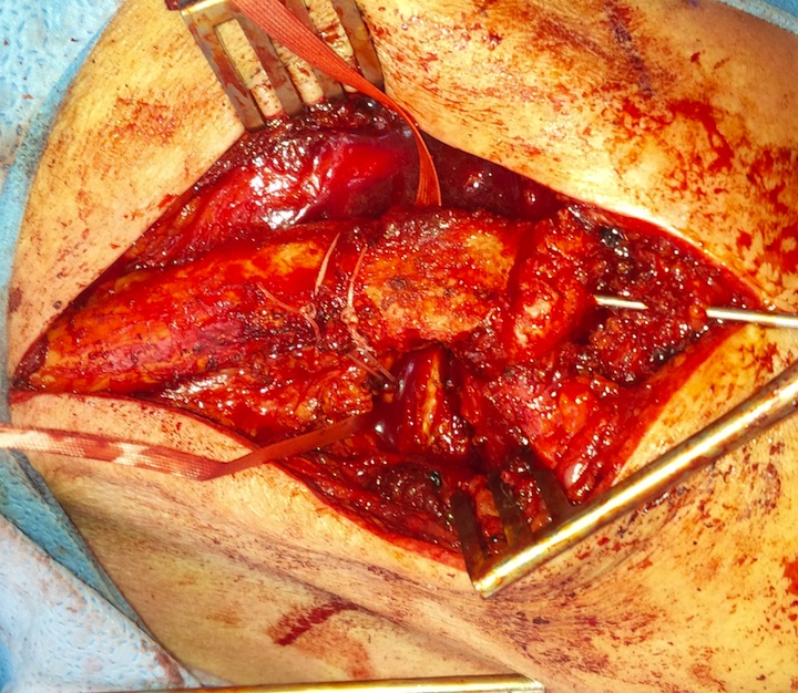 - detach trapezius from medial acromion to facilitate hook passage under acromion